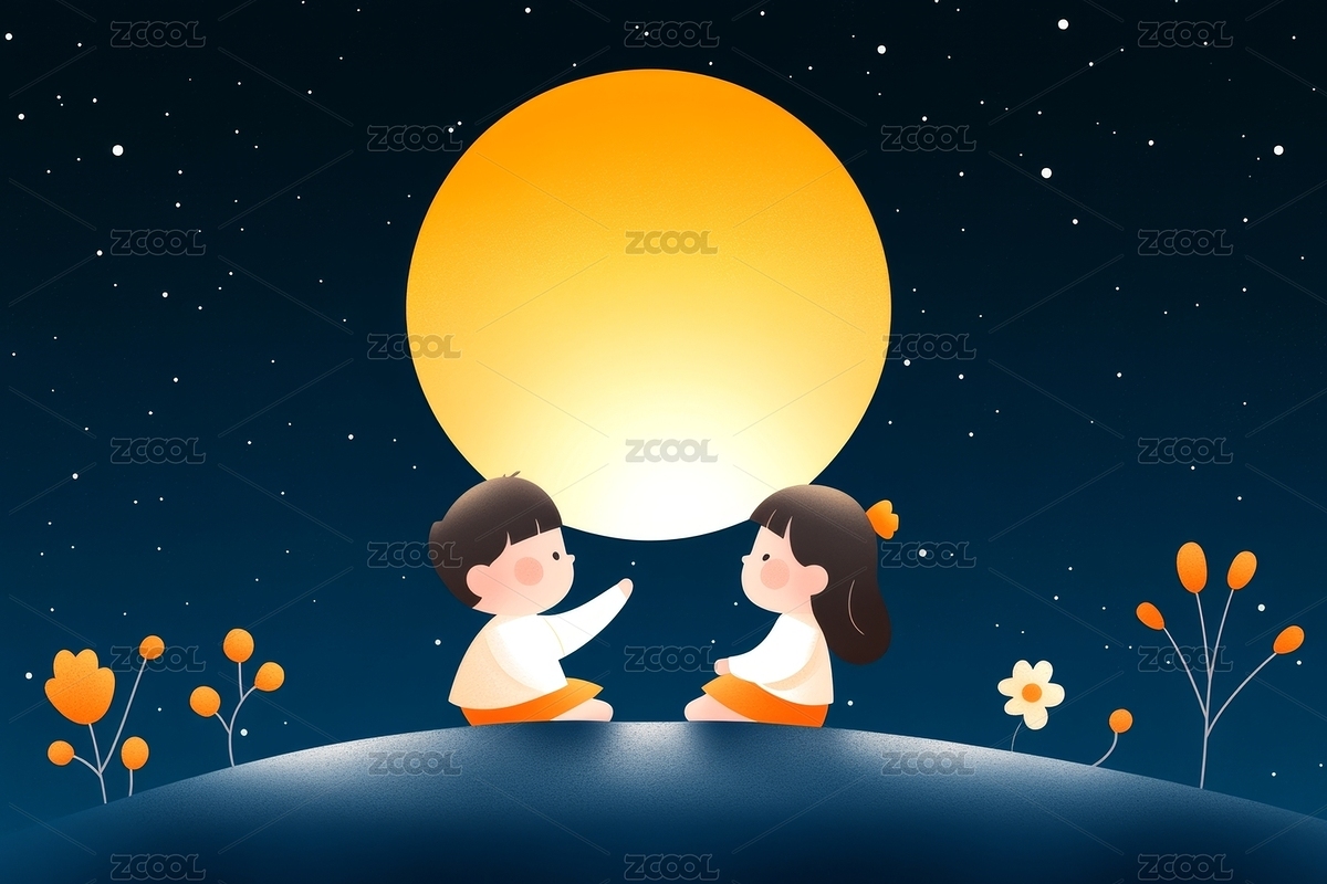 中秋节孩童赏月