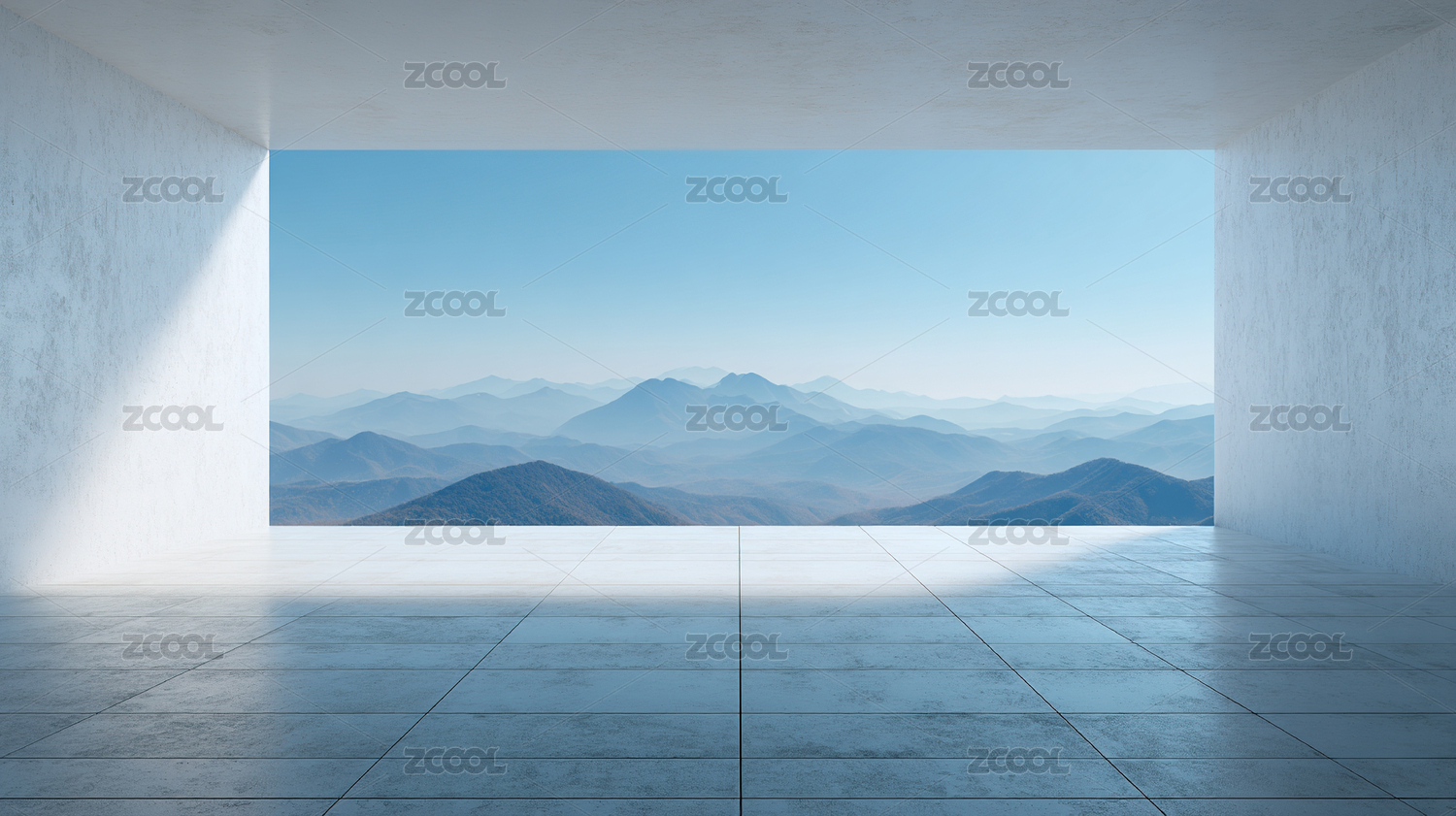 现代建筑内部与山景