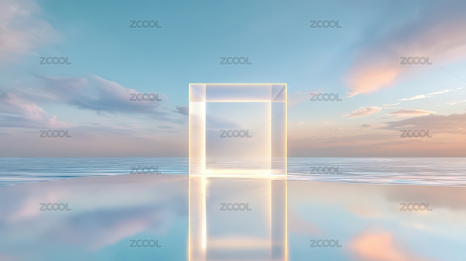 日落黄昏湖面上一块干净镜子倒影创意背景