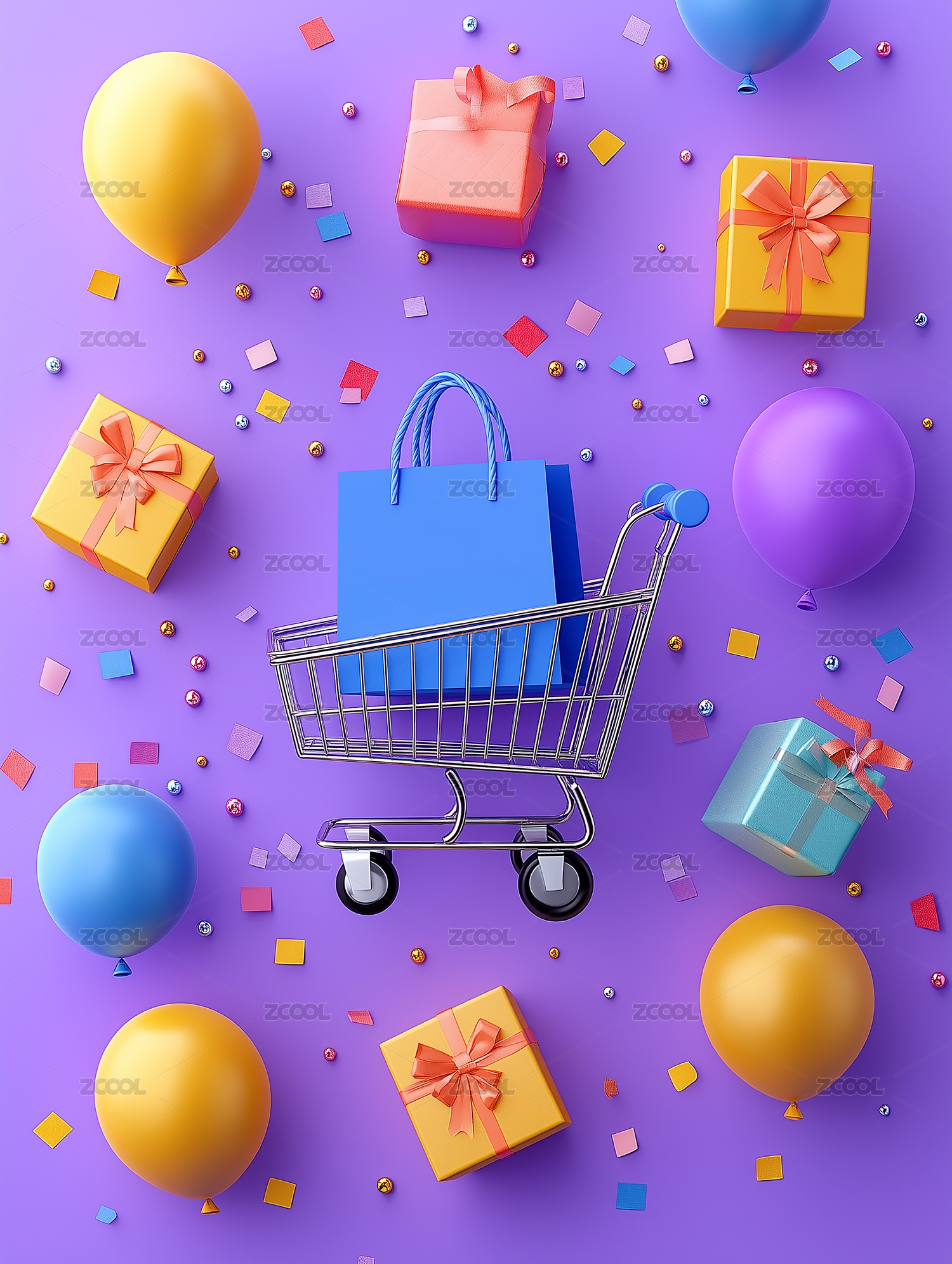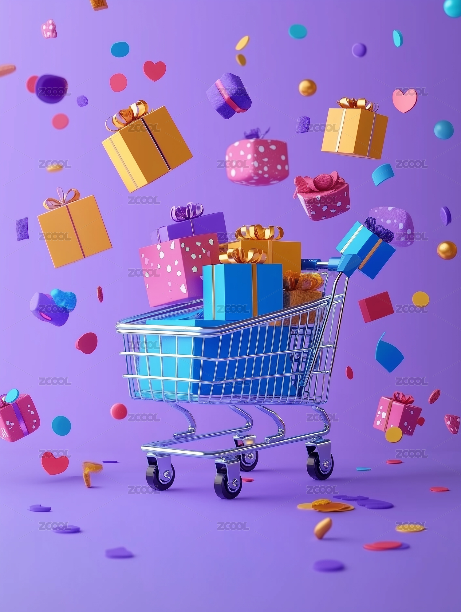 立体手推购物车电商促销节庆宣传元素