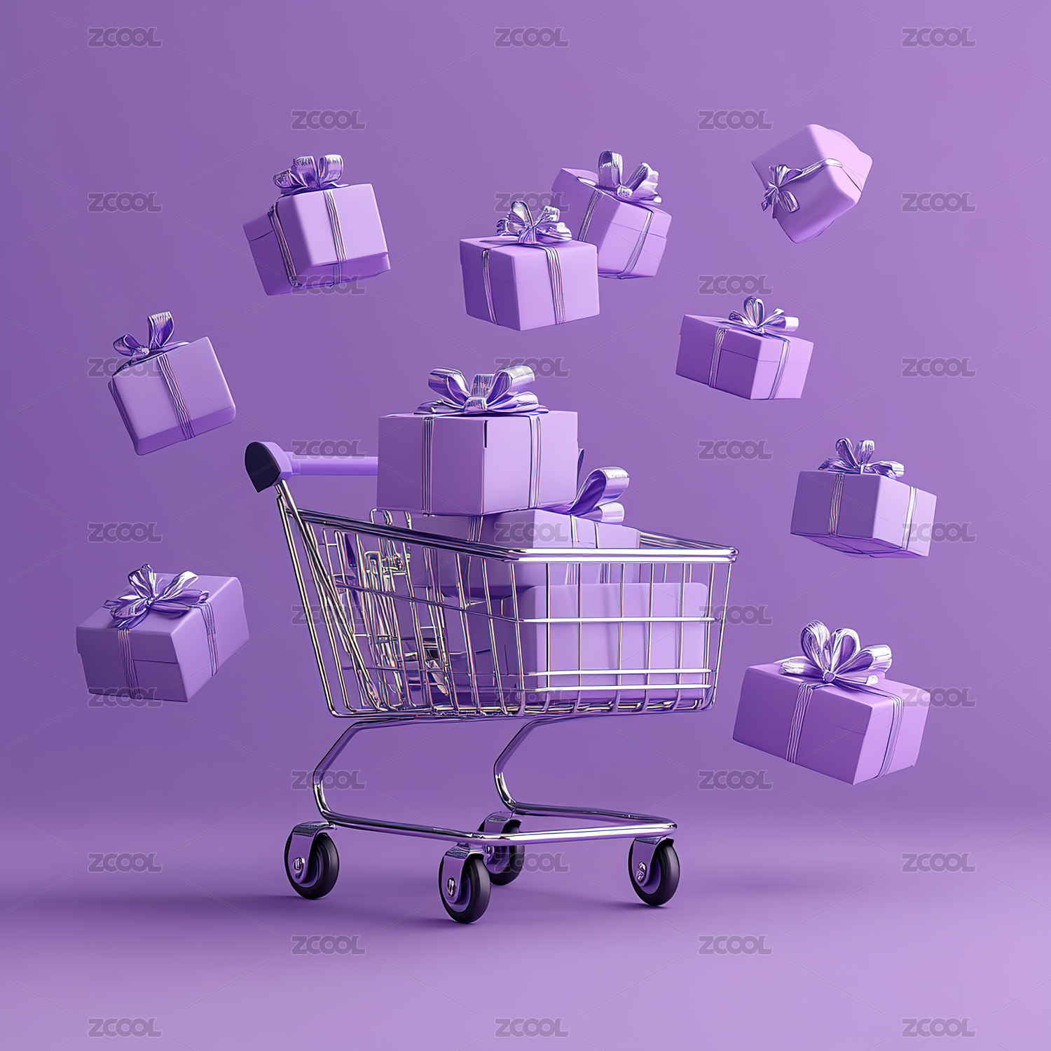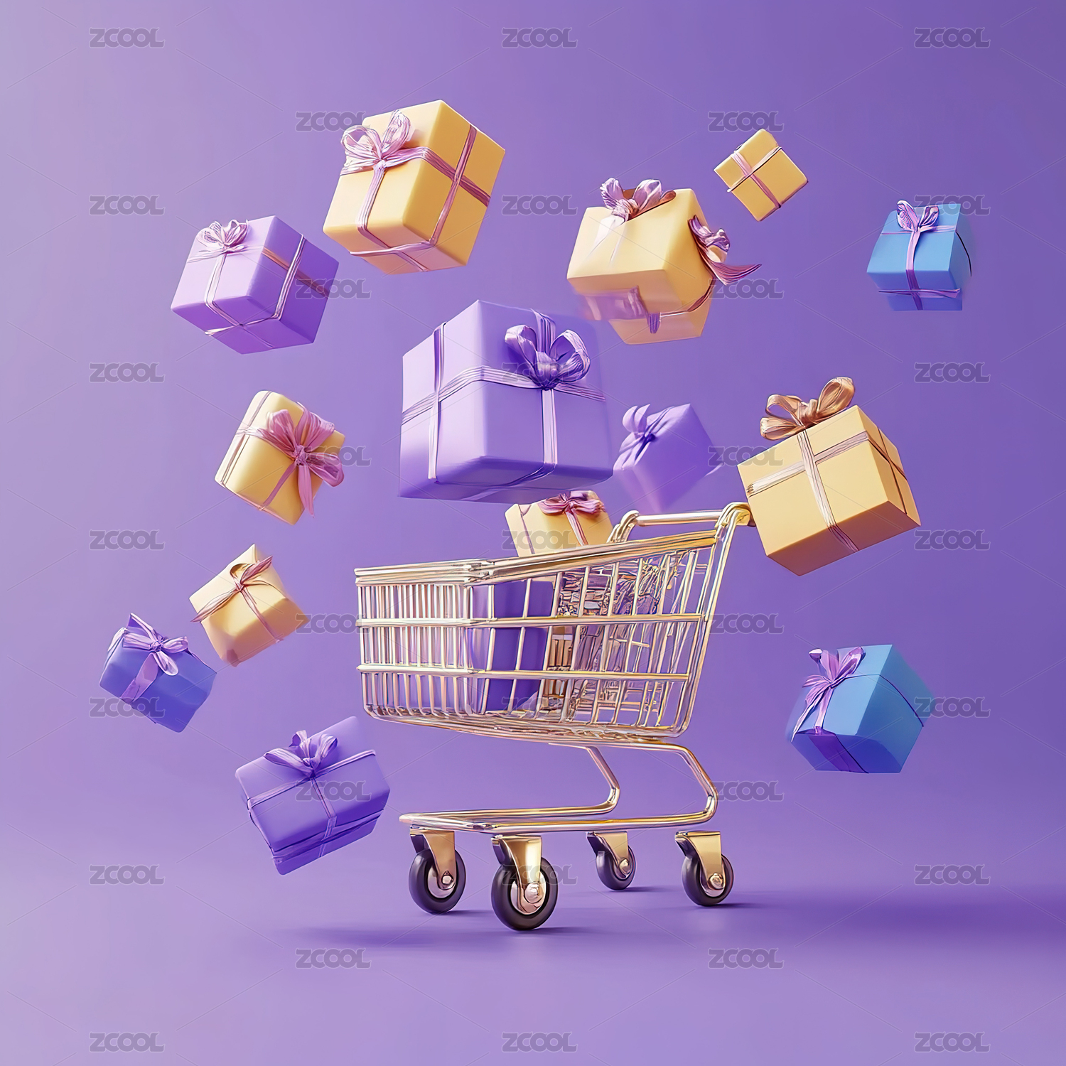装满礼品盒的购物车促销活动海报背景图