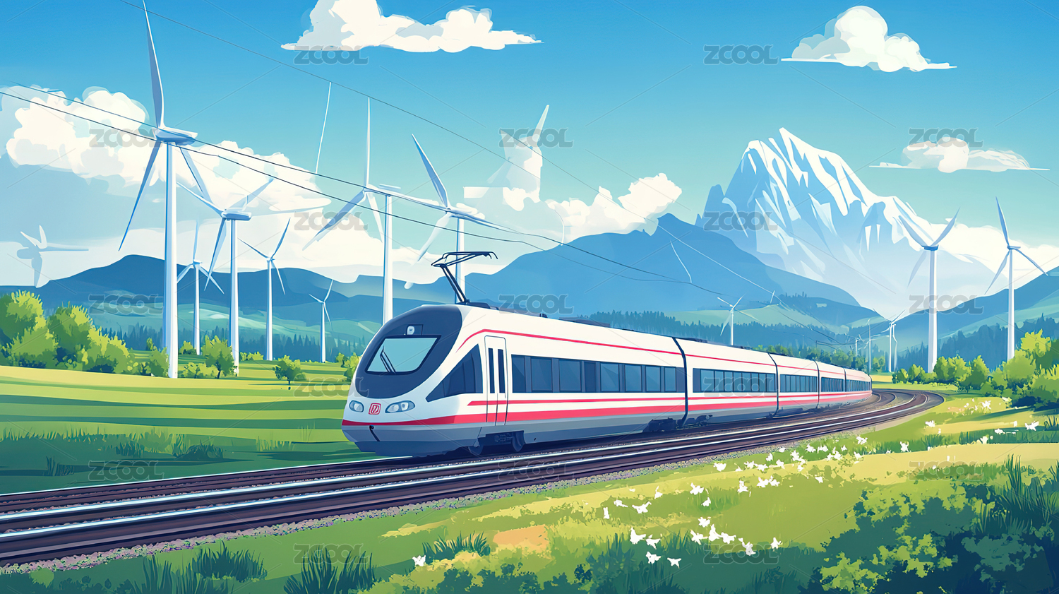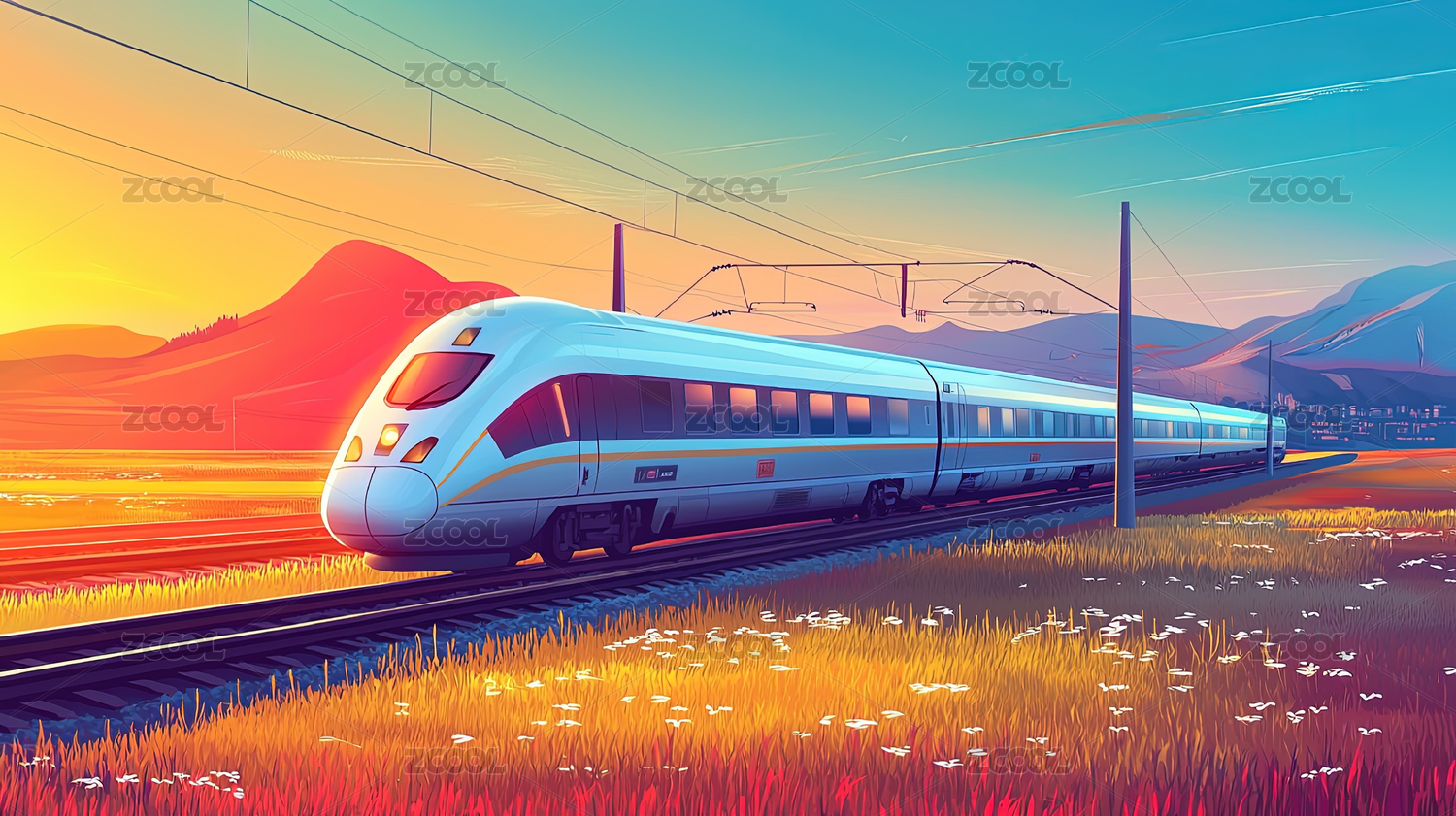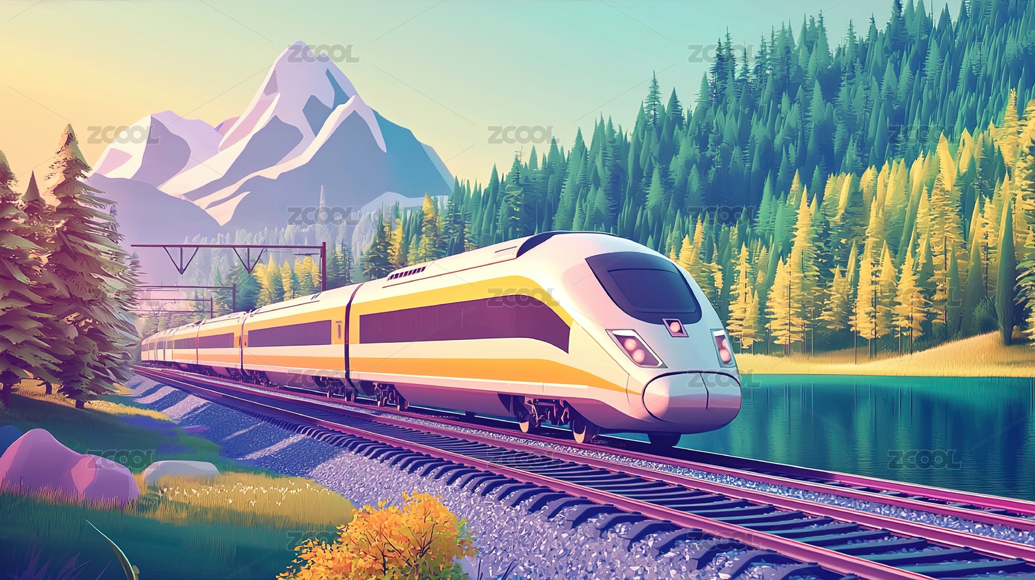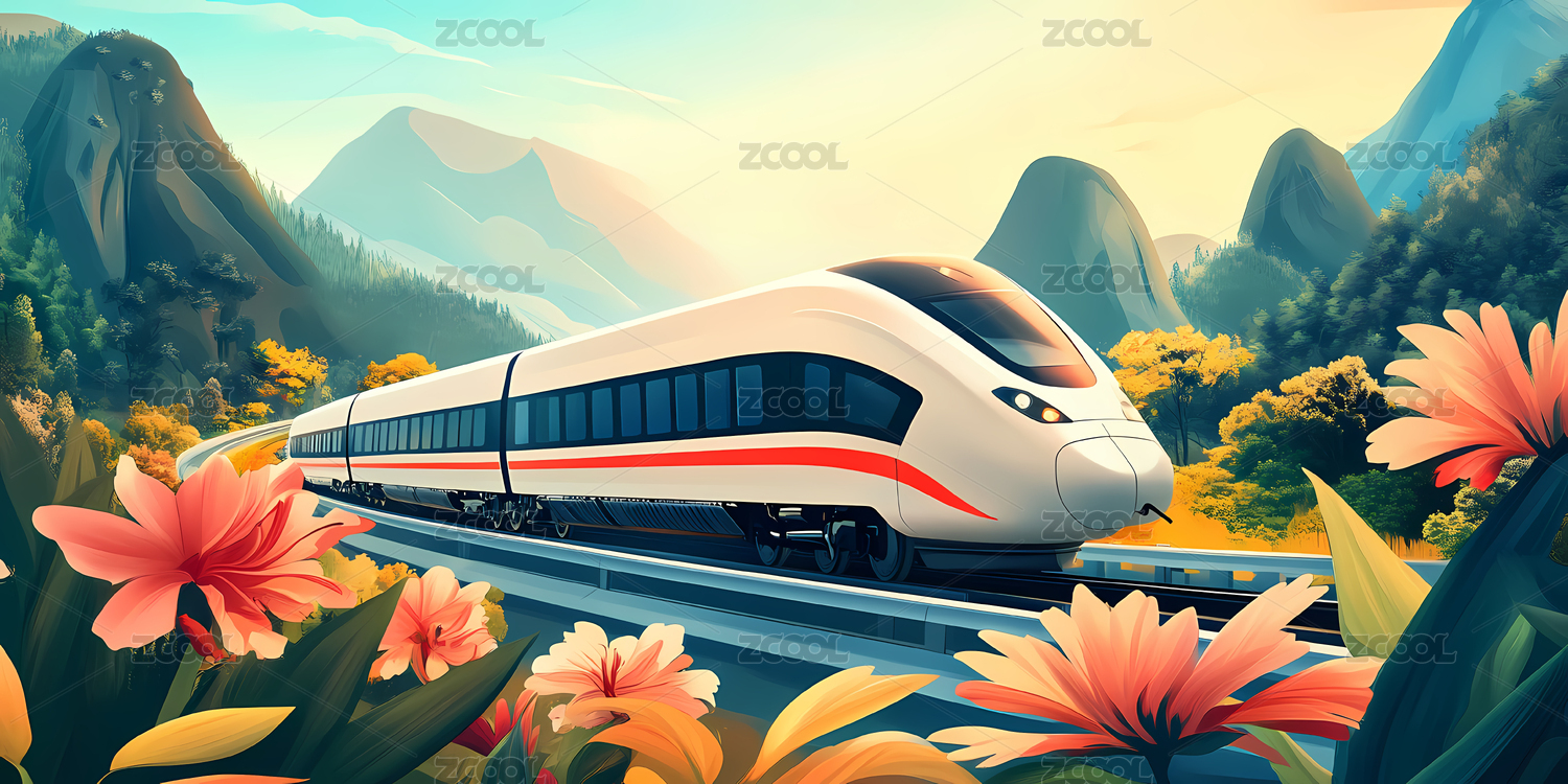 艺术, 花, 植物, 山脉, 风景, 自然, 绘画,列车, 高速列车, 隧道