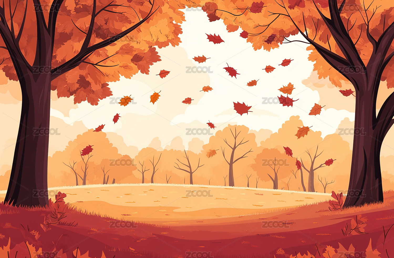 秋天秋季户外自然风光风景卡通漫画插画