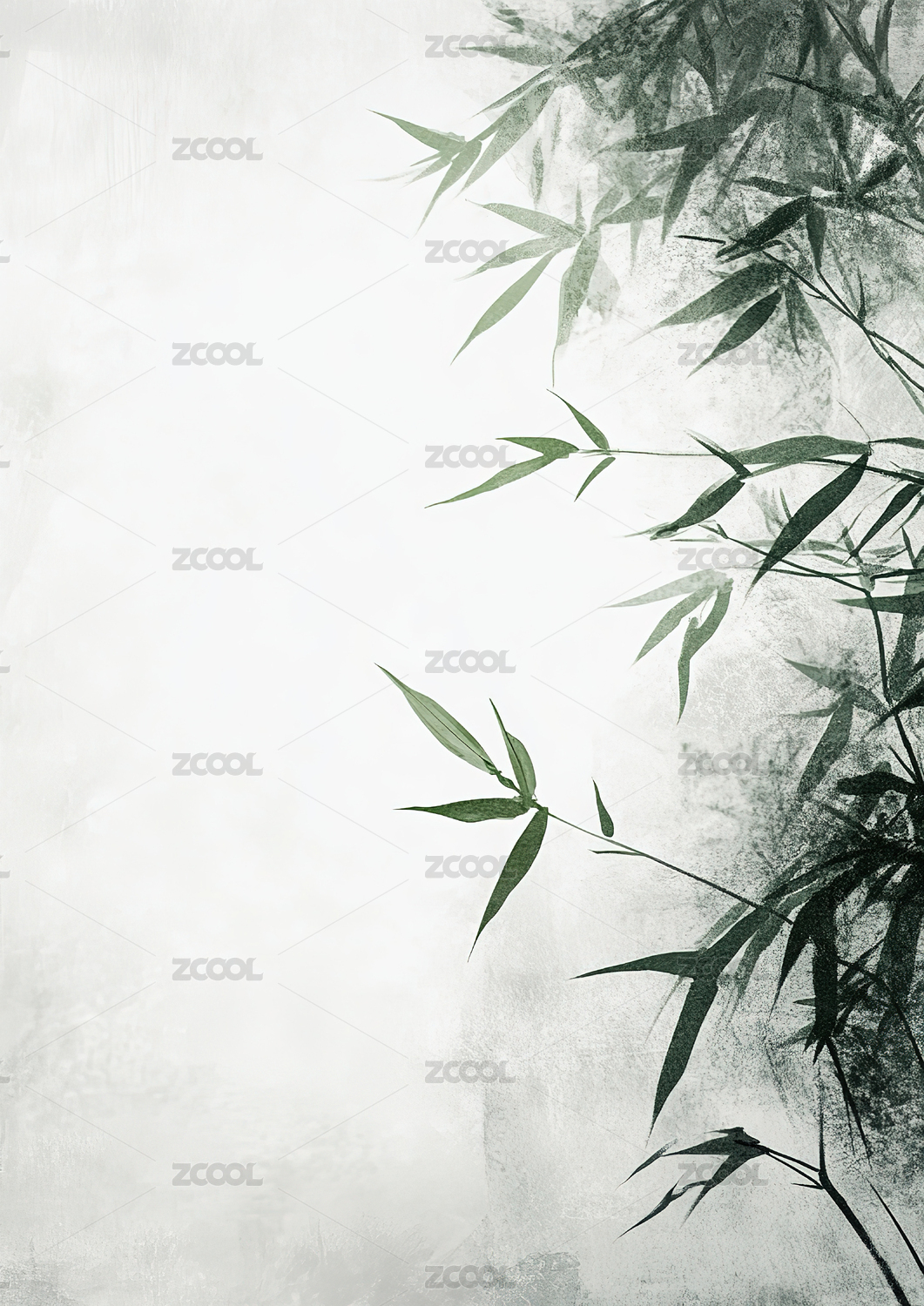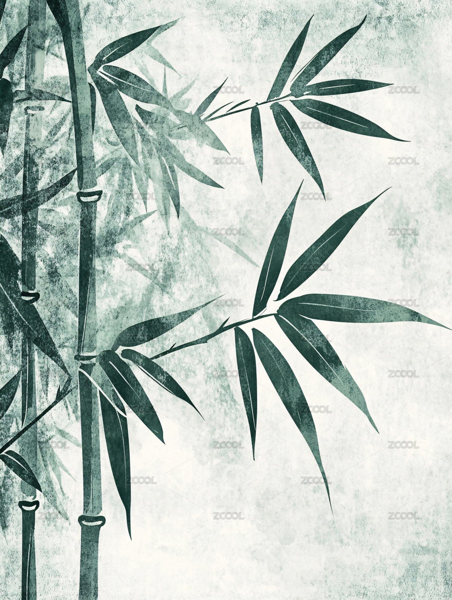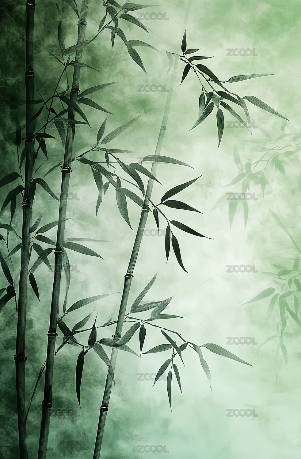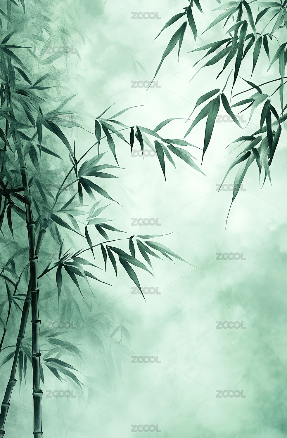 水墨风青绿色竹子背景图案