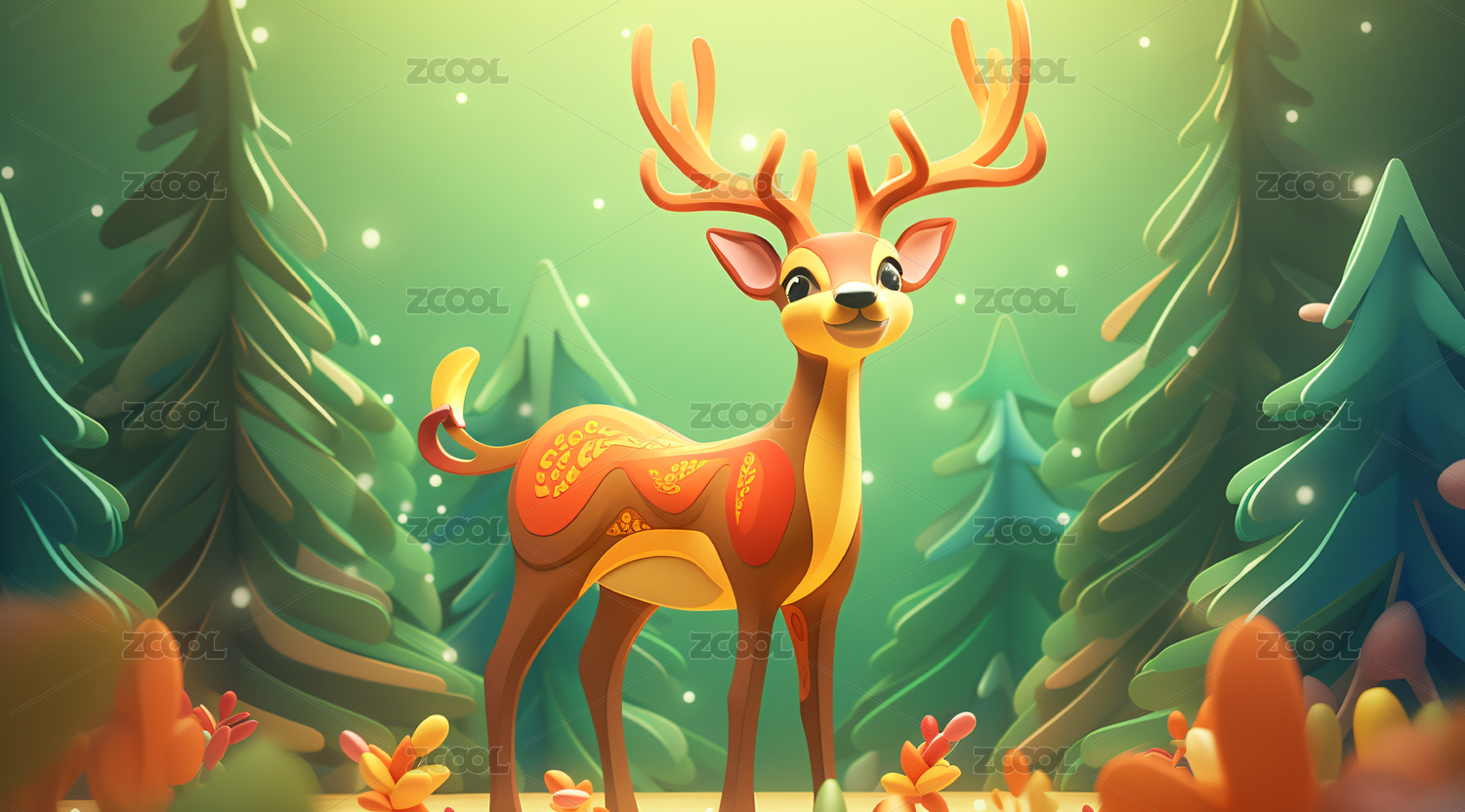 动物,森林,自然,绘画,背景,艺术,景色,可爱,插画,作品