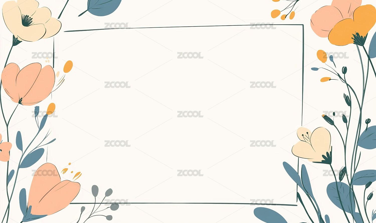 平面插画鲜花植物边框背景