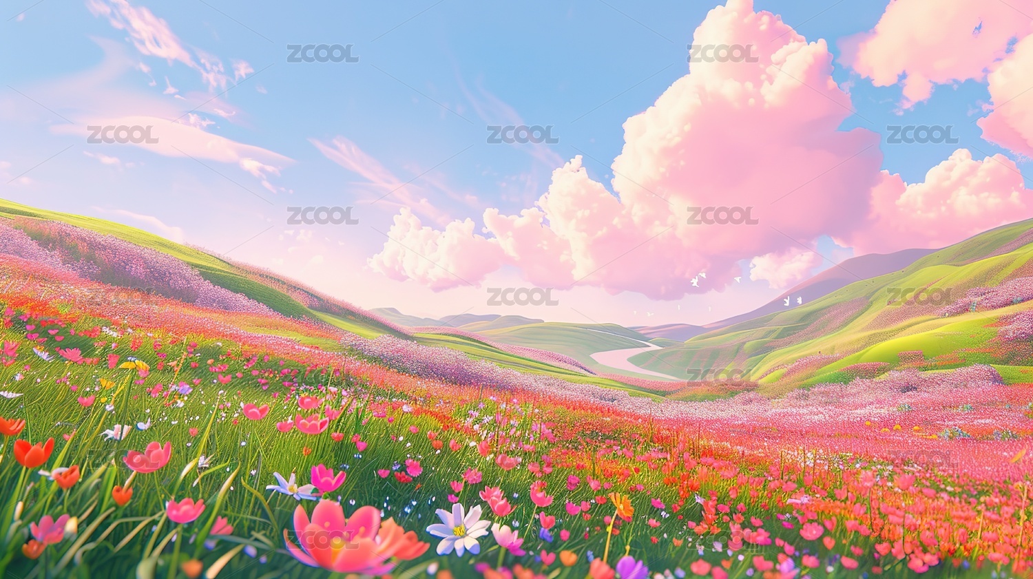 粉色花海清新自然场景
