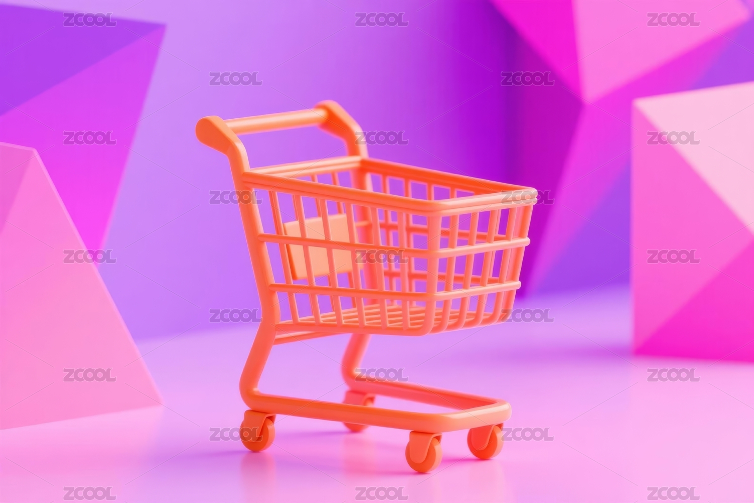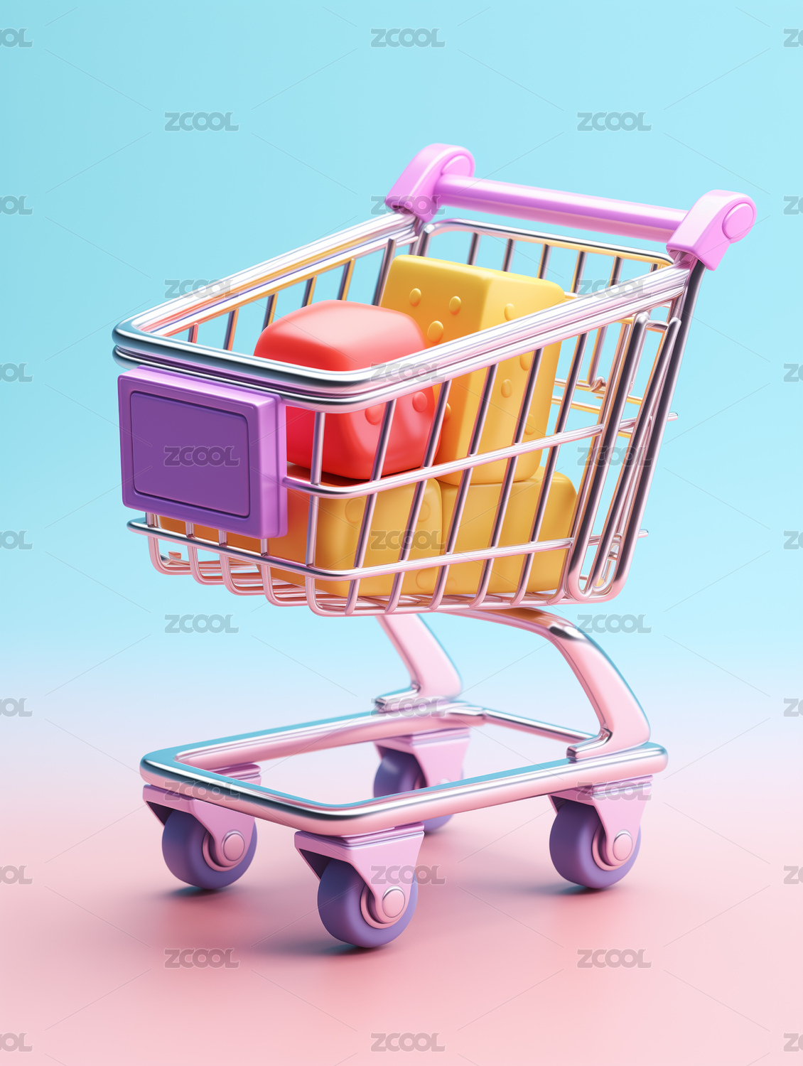 购物车,彩色球,蓝色,背景,粉色,黄色,购物,球体