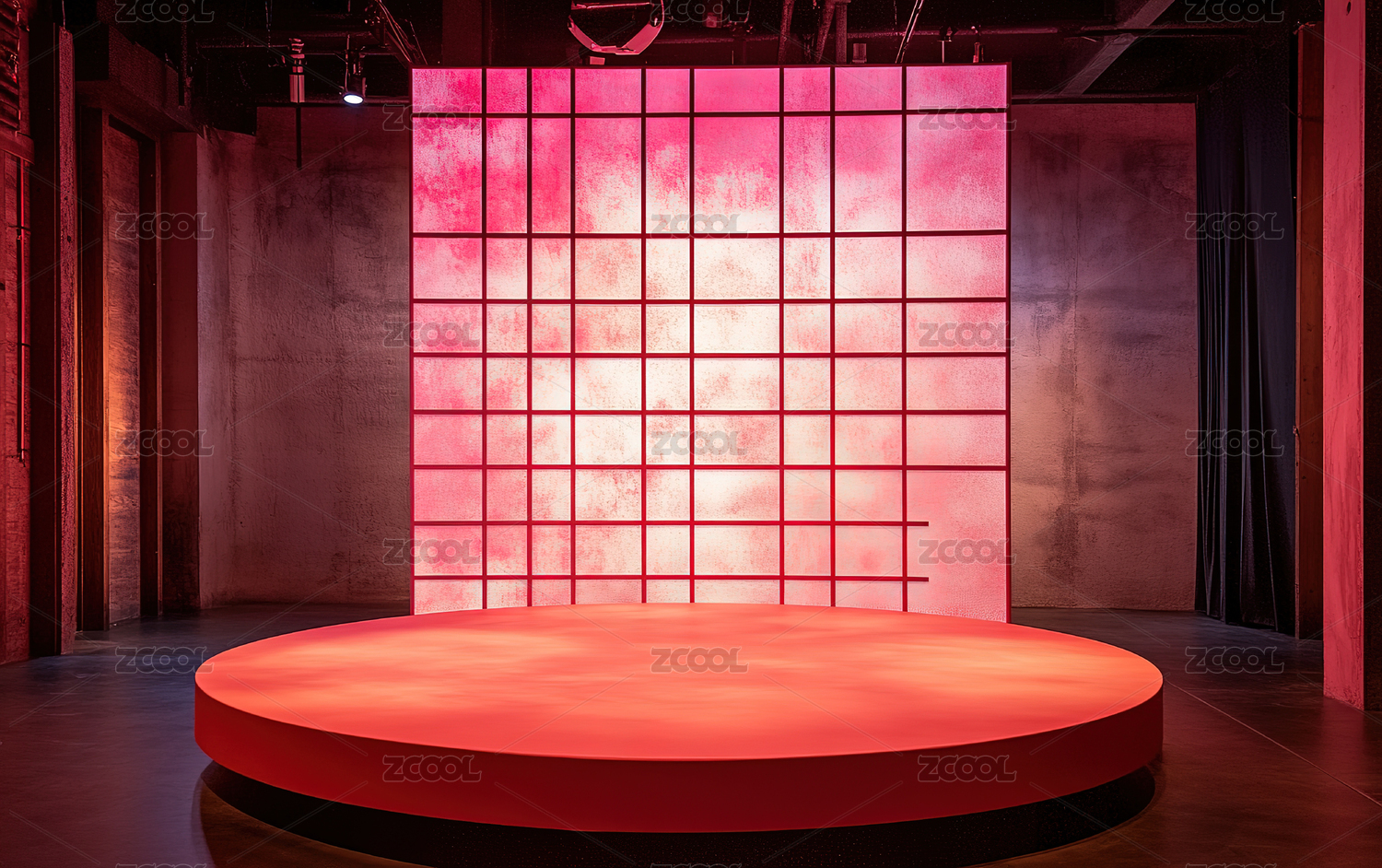 中式,舞台,布景,灯光,装饰,圆形,平台,传统,图案,红色