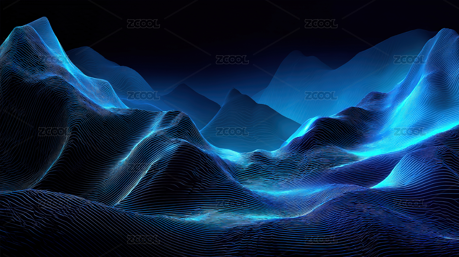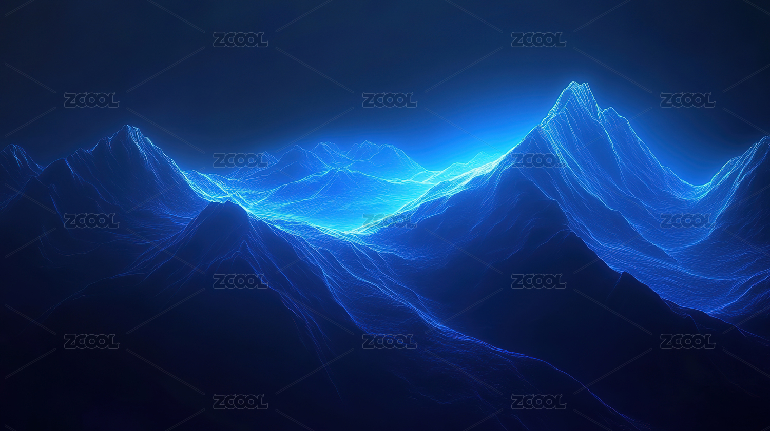 蓝色光影山脉抽象景观
