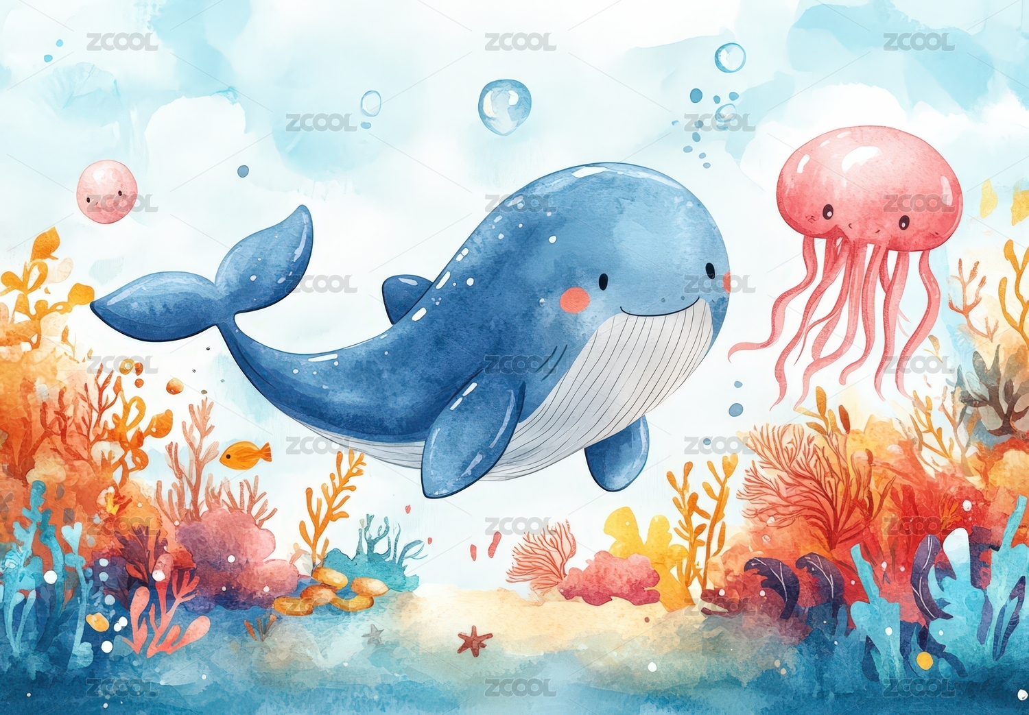 水彩海洋生物图画
