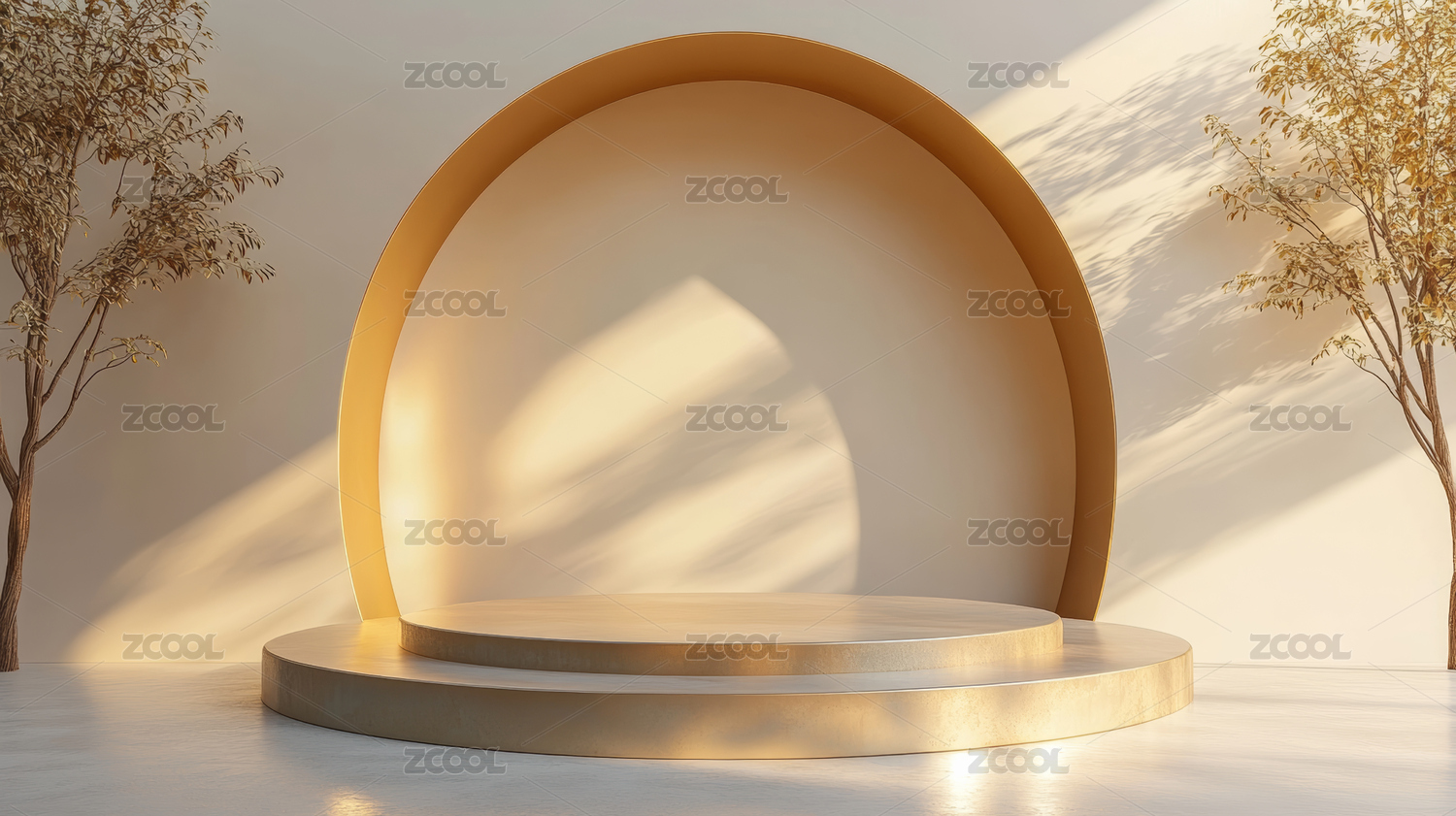 简约圆形背景下的光影展示台