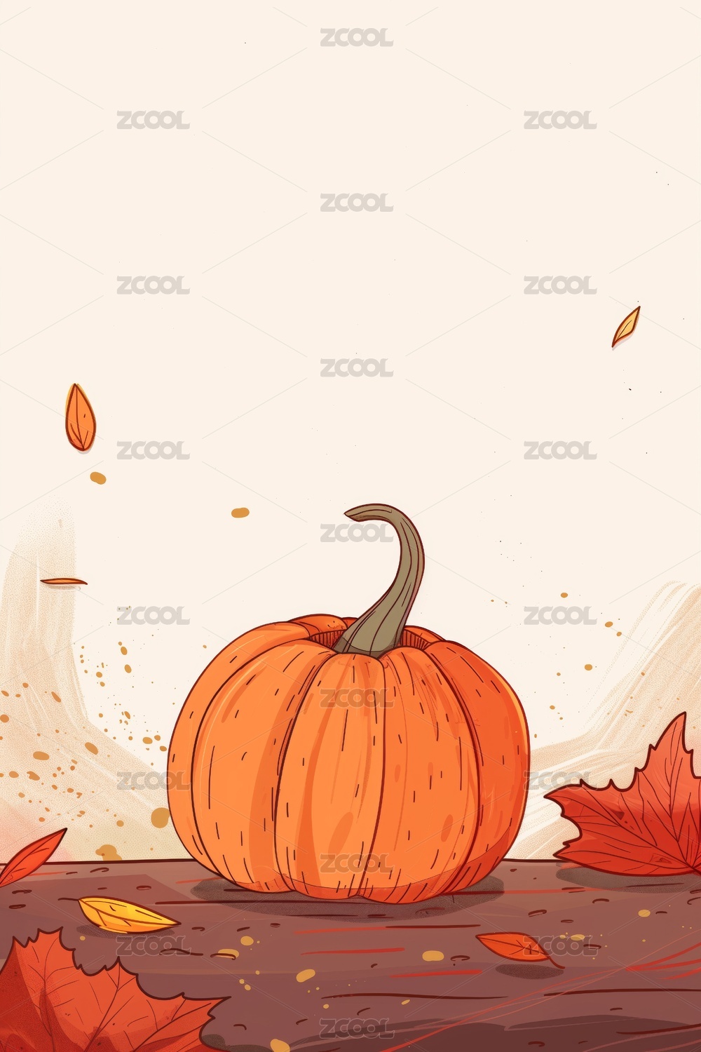 秋季地面上一个金黄色的老南瓜扁平插画绘画