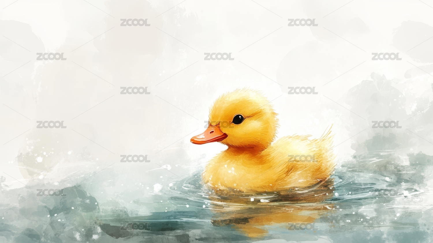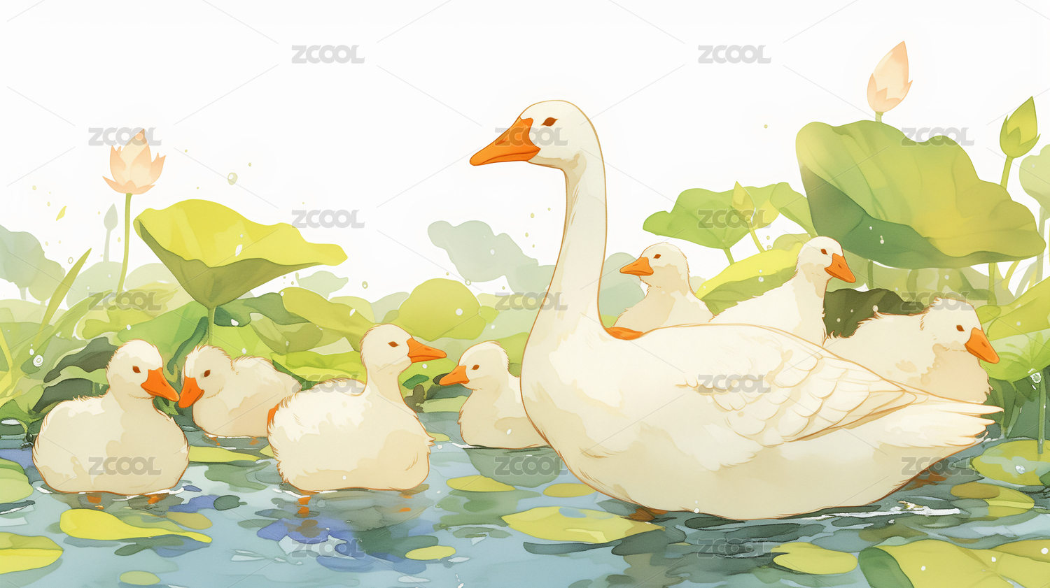 小鸭子卡通可爱湖面治愈系插画