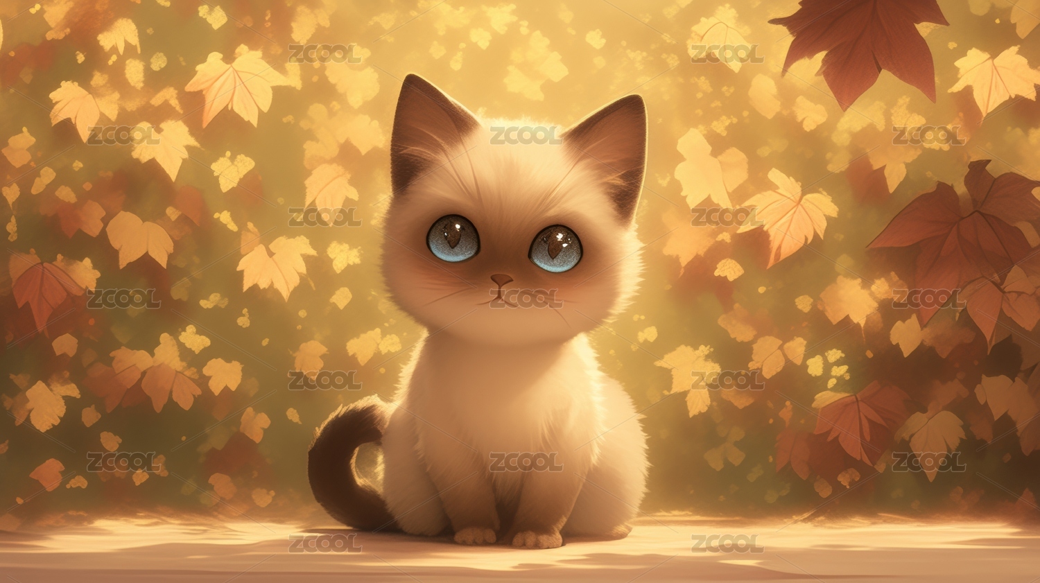 猫,猫咪,宠物,枫叶,落叶,秋季