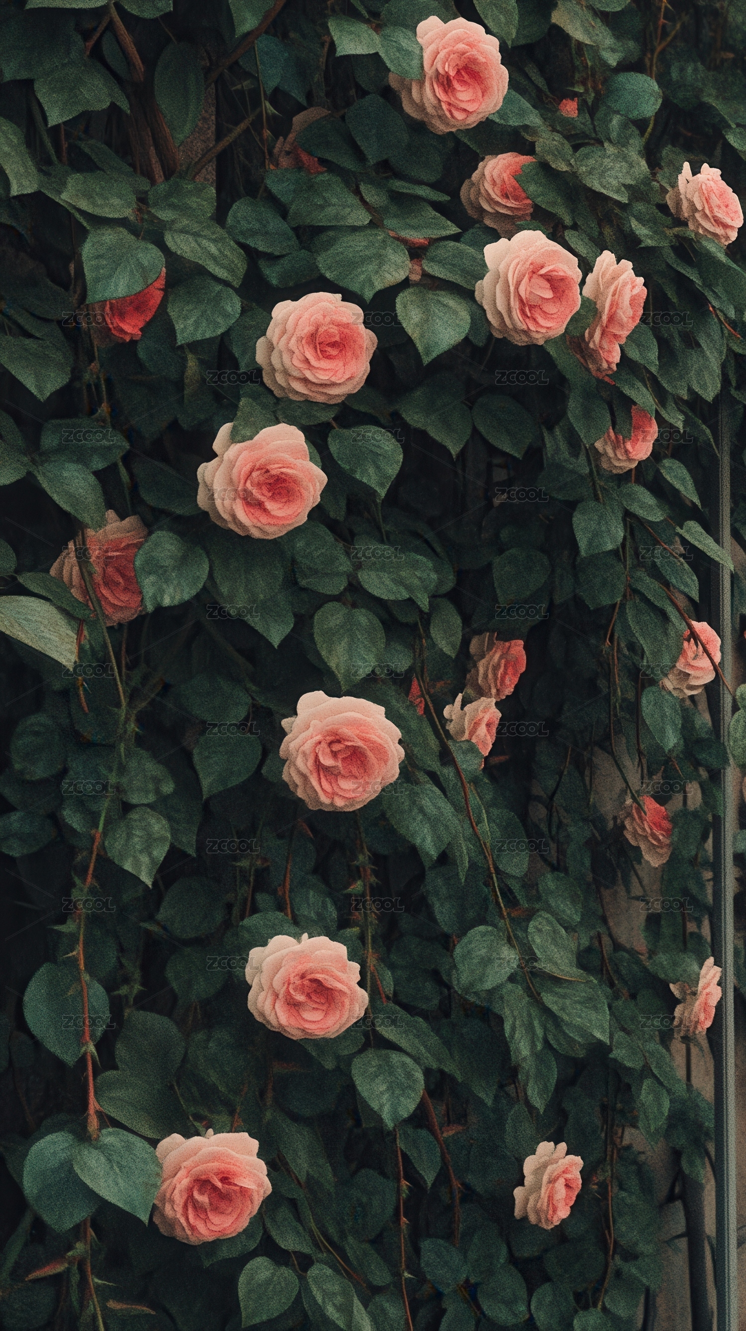 自然,景色,植物,背景,美丽,粉色,玫瑰,花墙,绿叶,花朵