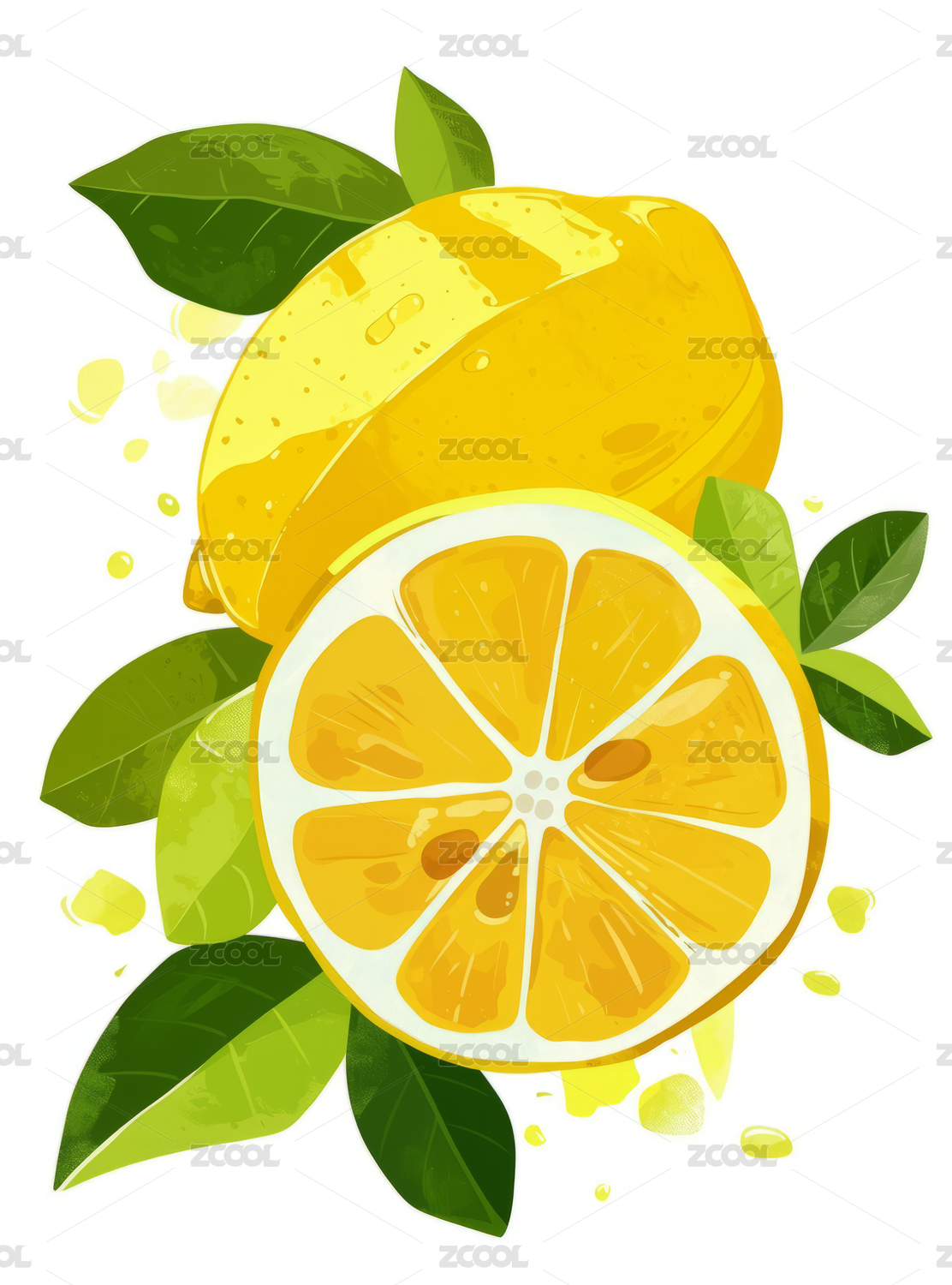 白背景带叶子的成熟的橘子手绘扁平水彩插画