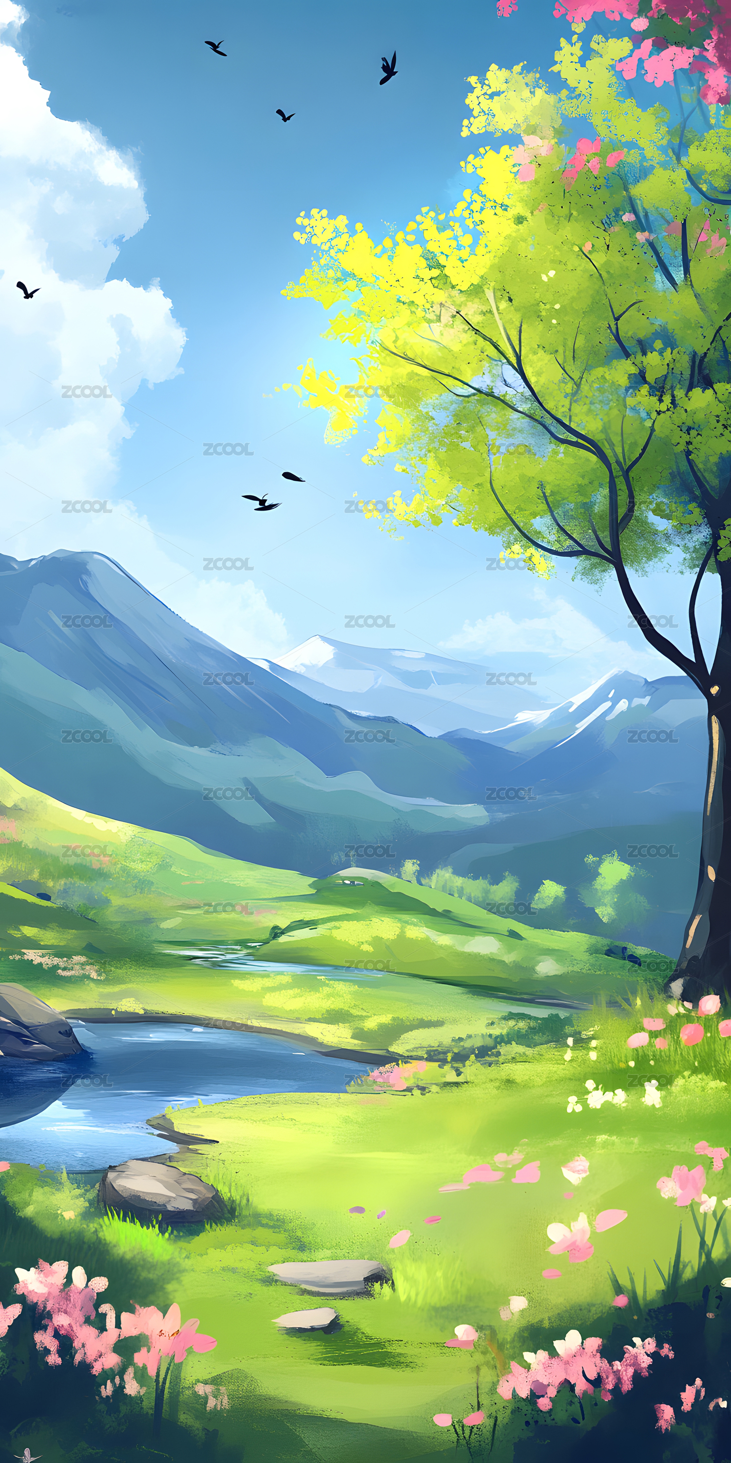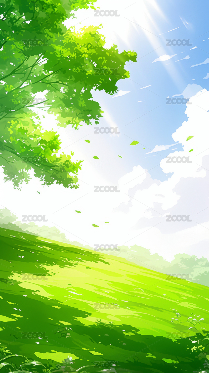 夏天白天黄绿色寂静安静的田野3D插画绘画