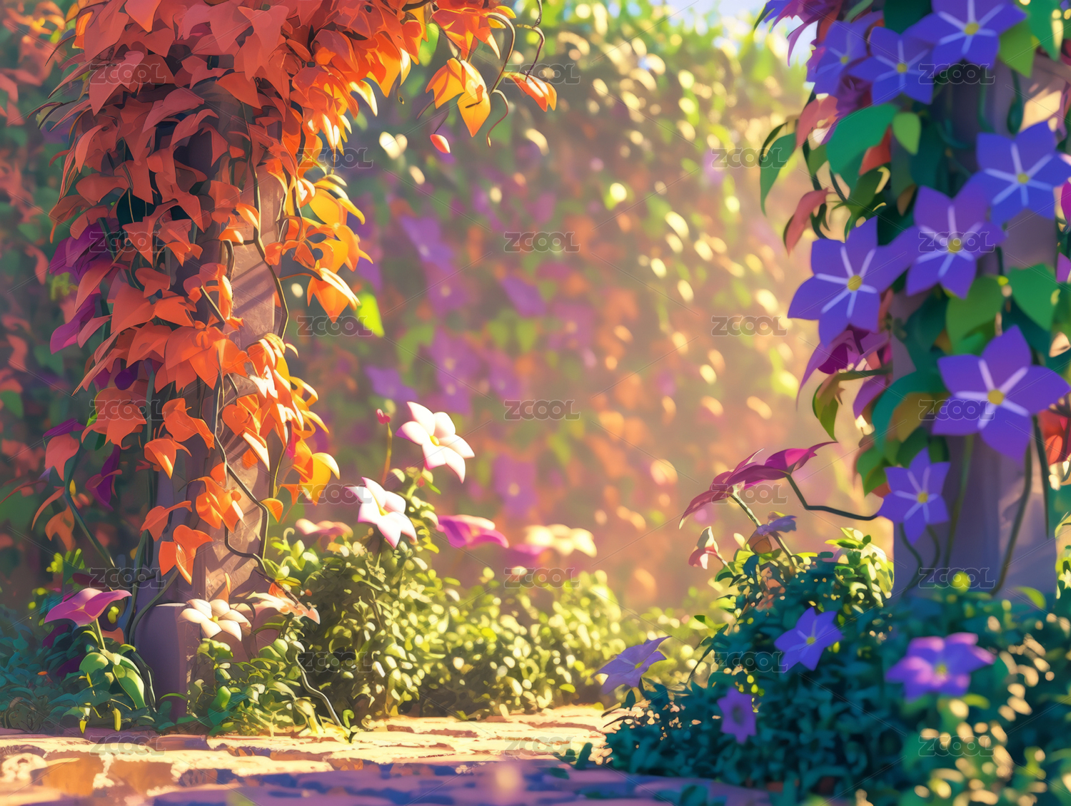 花园,花墙,花朵,阳光,绿草,秋天,自然,植物