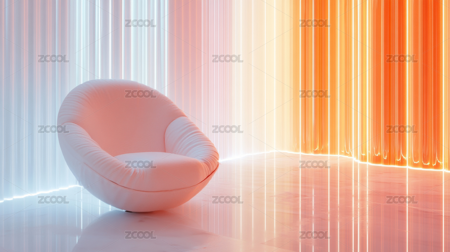 渐变橙色空间的简约沙发
