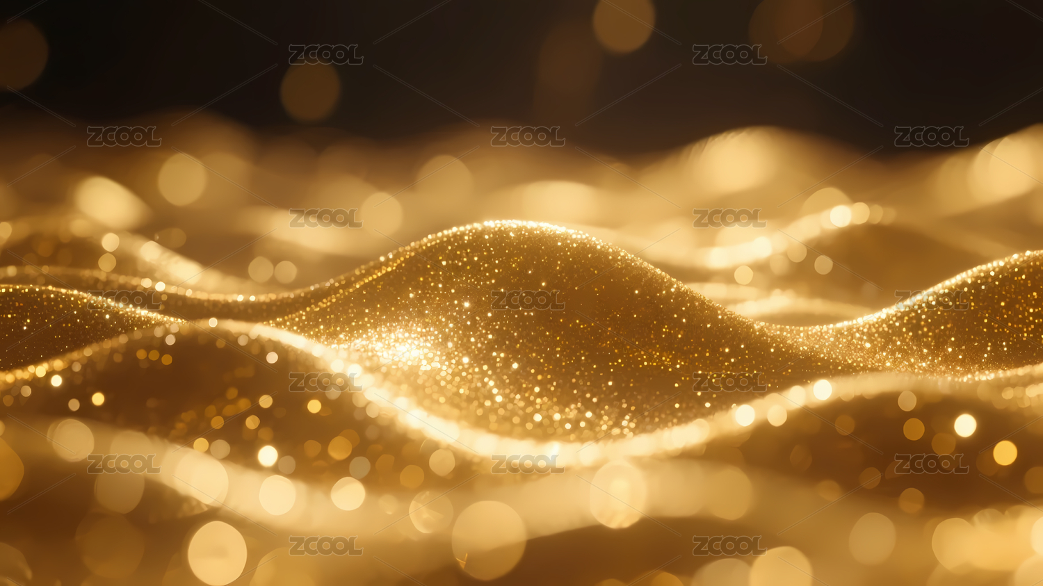 金色波浪与闪烁光点的抽象背景