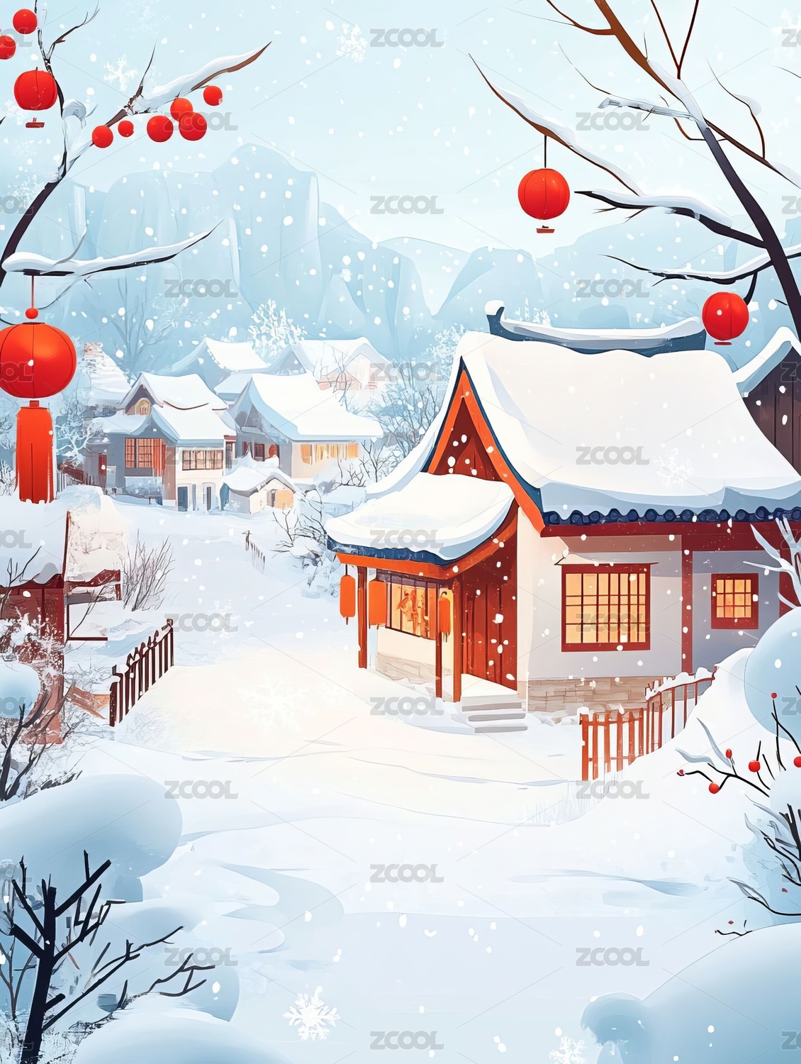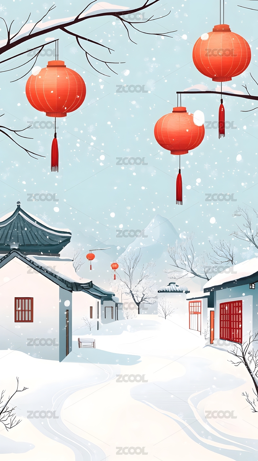 冬日雪景红灯笼