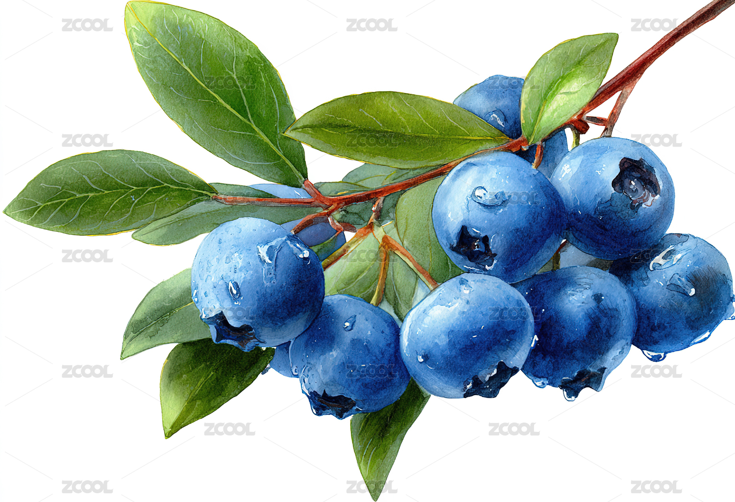 清新,果实,美味,植物,颜色,紫色,蓝莓,枝条,水彩,蓝色