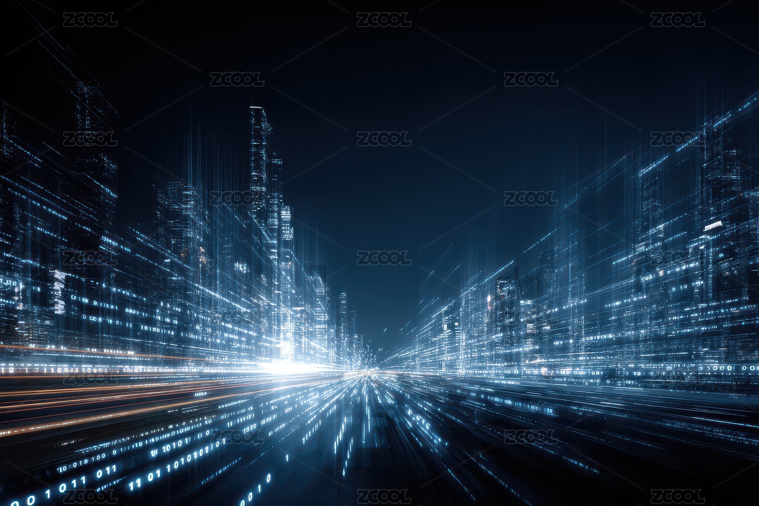 未来城市夜景与数据流