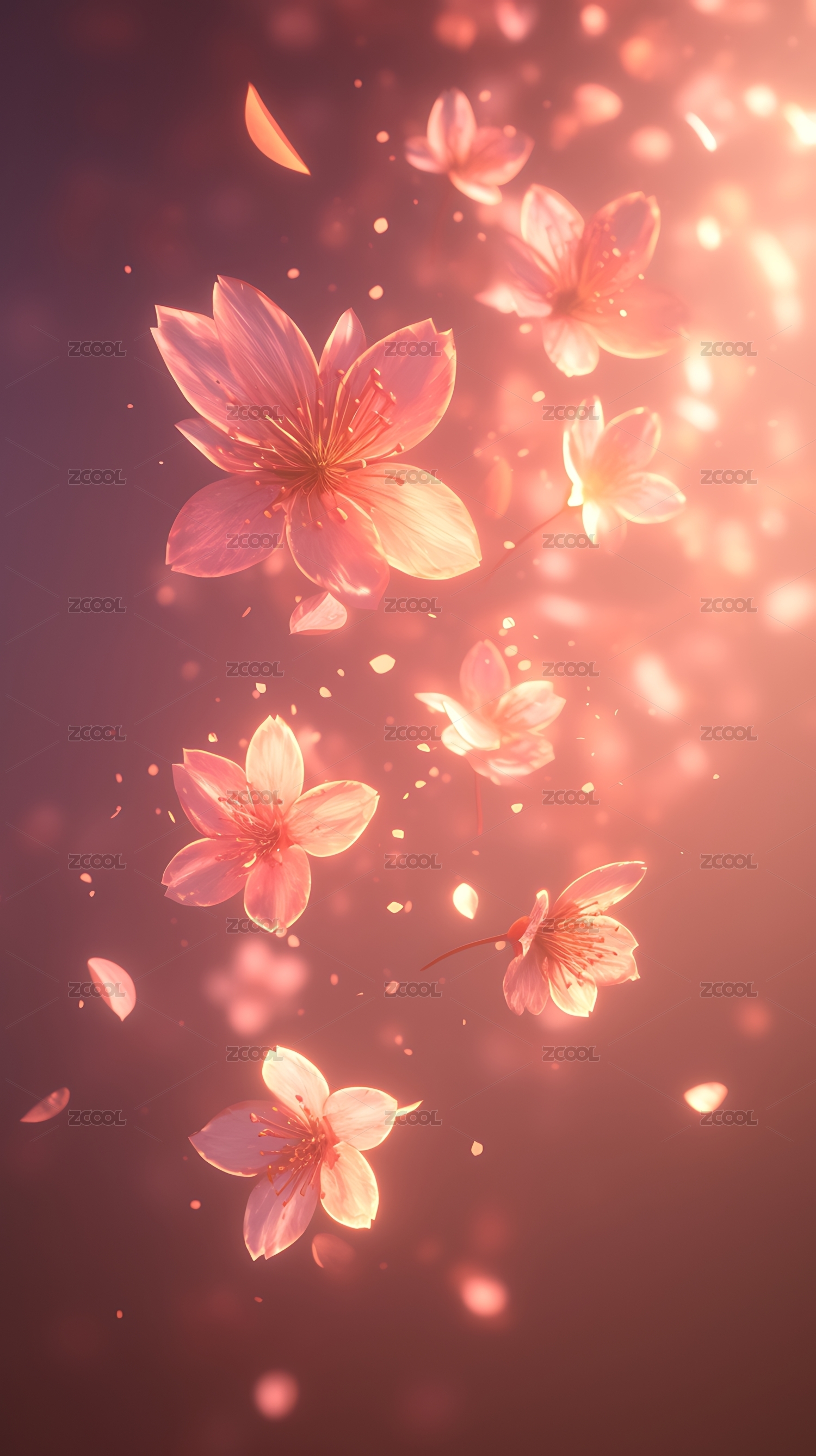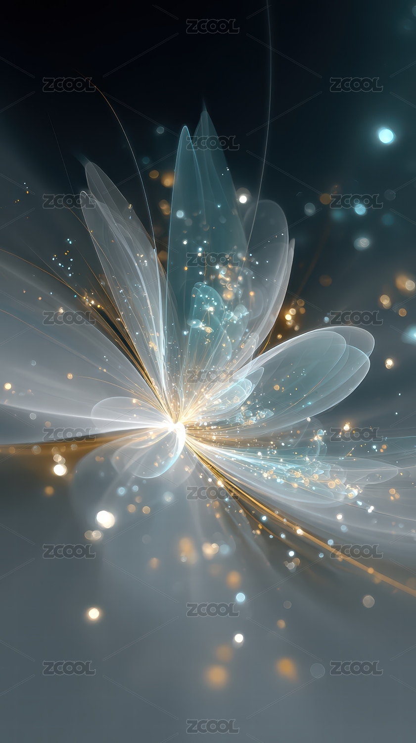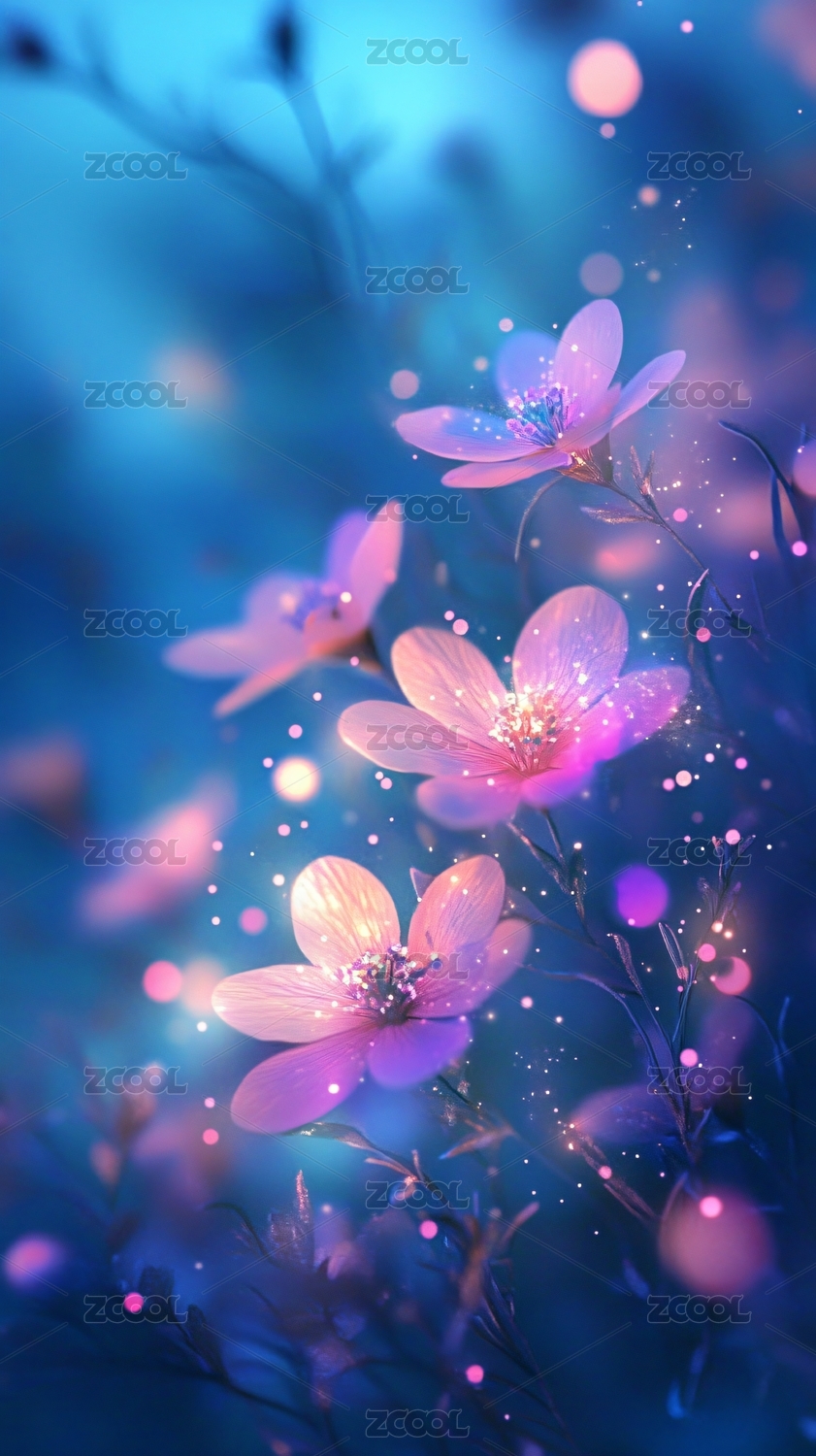 夜晚神秘黑色岩石上荧光色的花3D立体插画