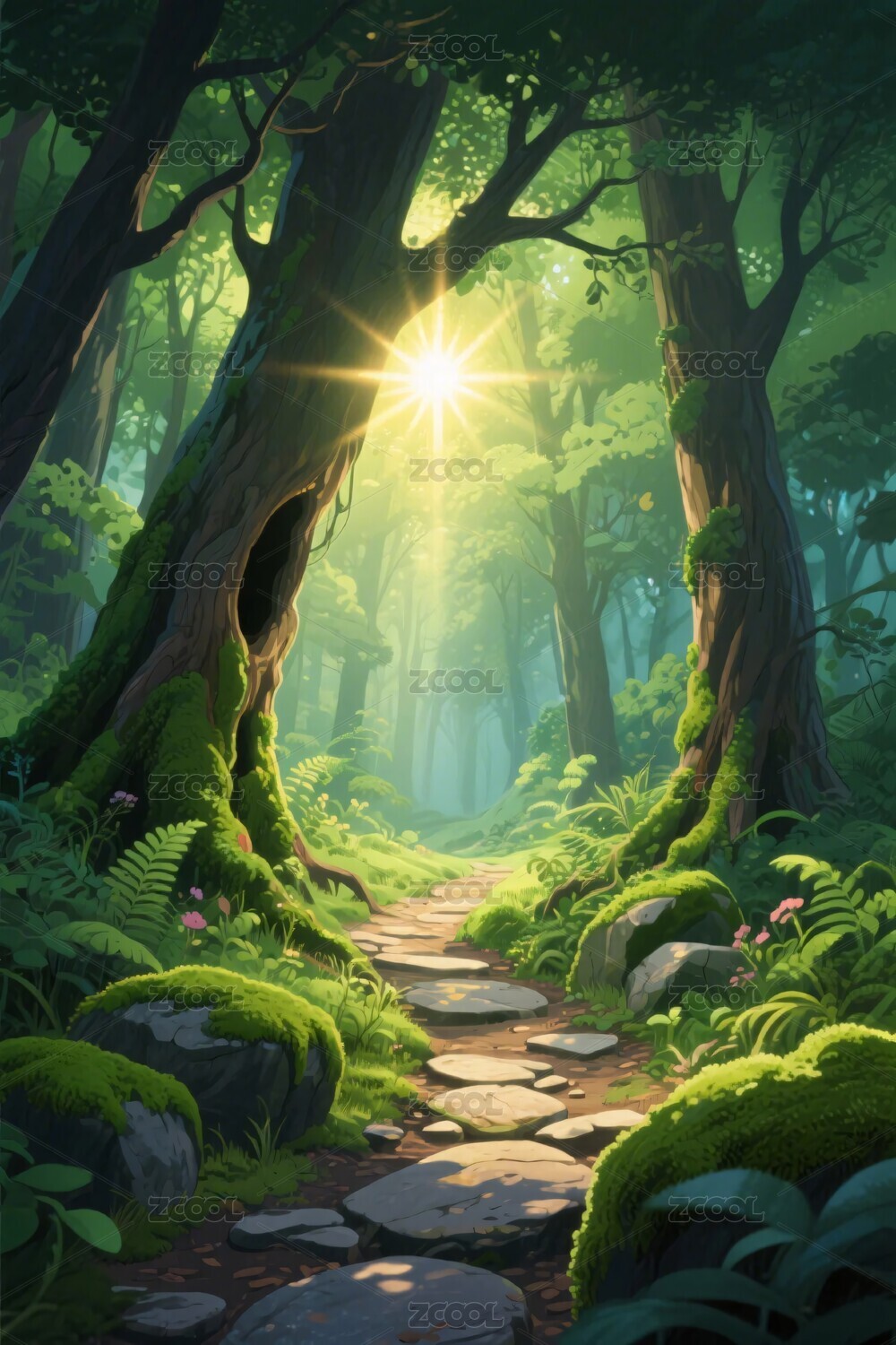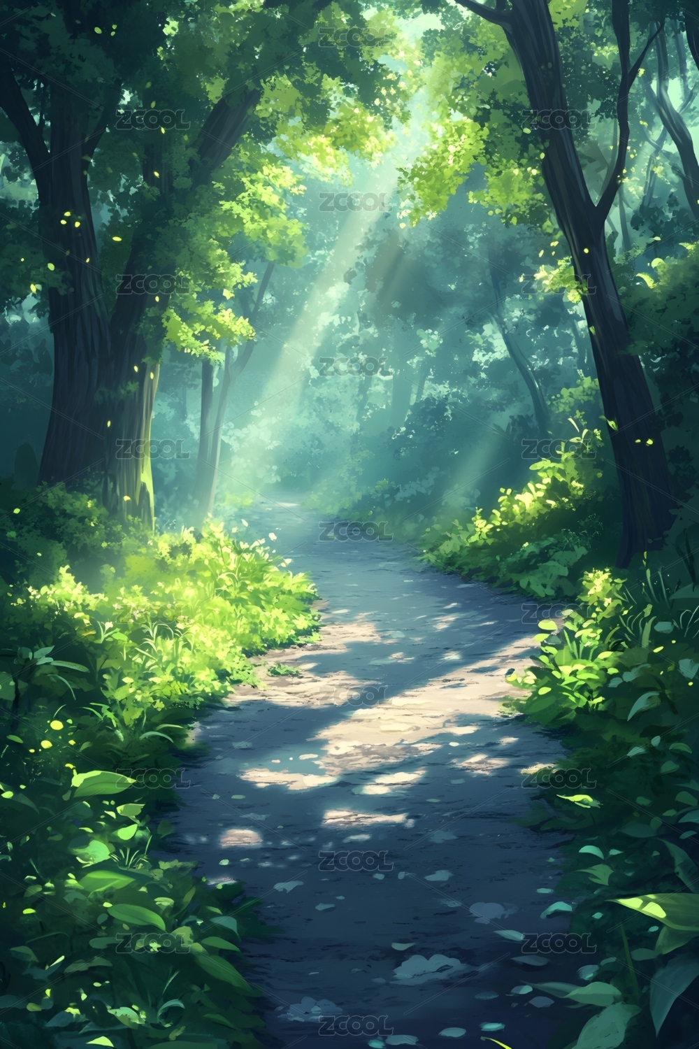 森林秘境的幽静小路 绿意盎然的治愈之旅