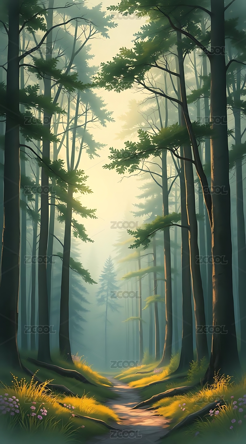 幽静森林的神秘光影 迷雾森林的静谧小径