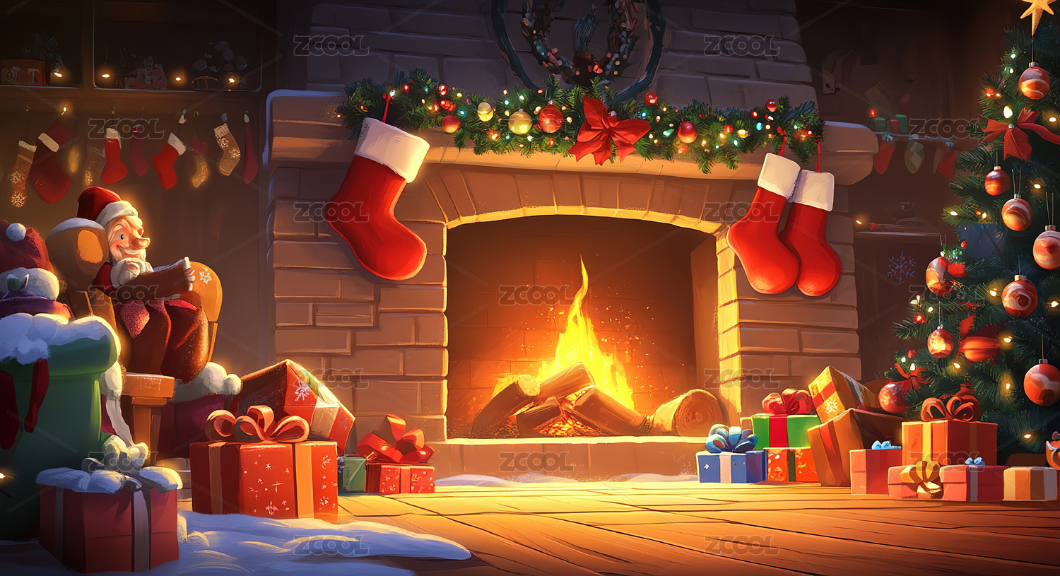 蓝色,树木,白色,雪,房屋,粉色,红色,圣诞节,礼物,窗户
