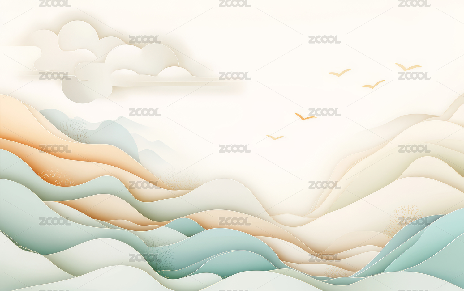 传统中国元素的祥云和海浪纹理艺术背景