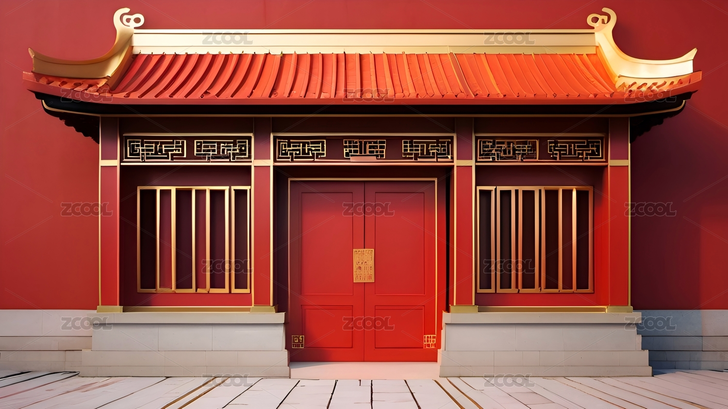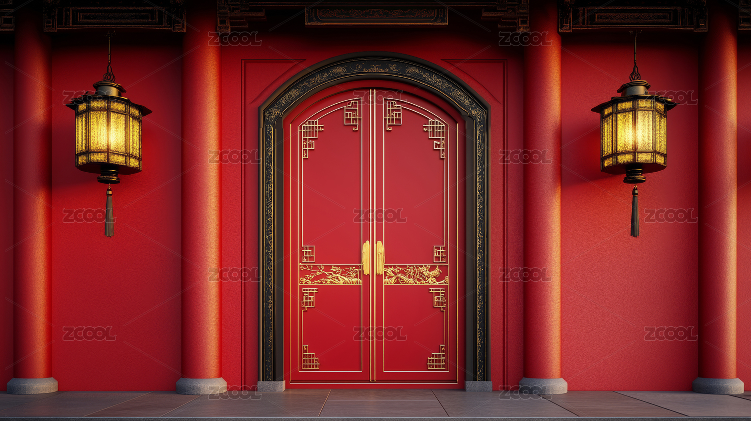 红色,传统,大门,灯笼,入口,对称,古代建筑,金色装饰,中国文化,历史