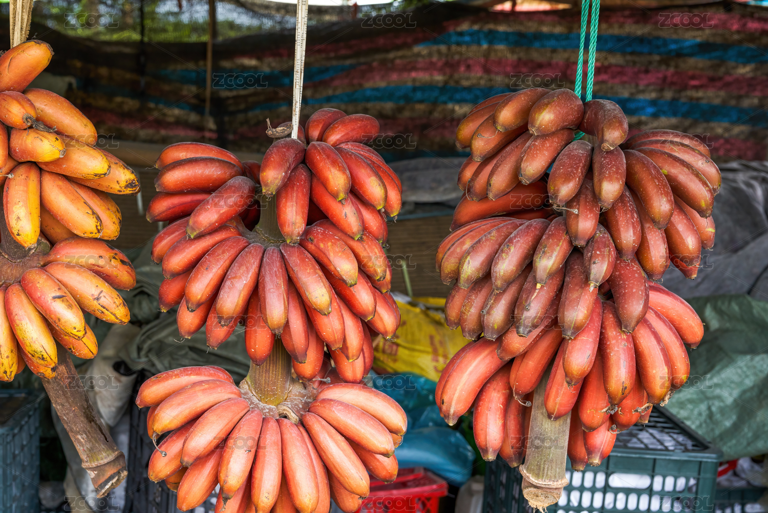 热带地区的红皮香蕉和黄皮香蕉特色水果