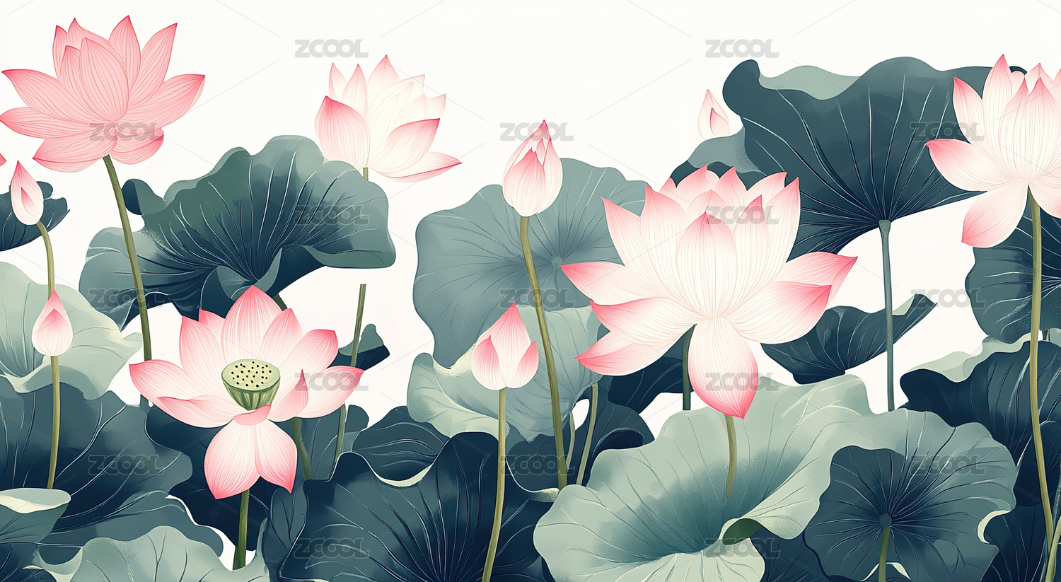 国风荷花荷叶插画