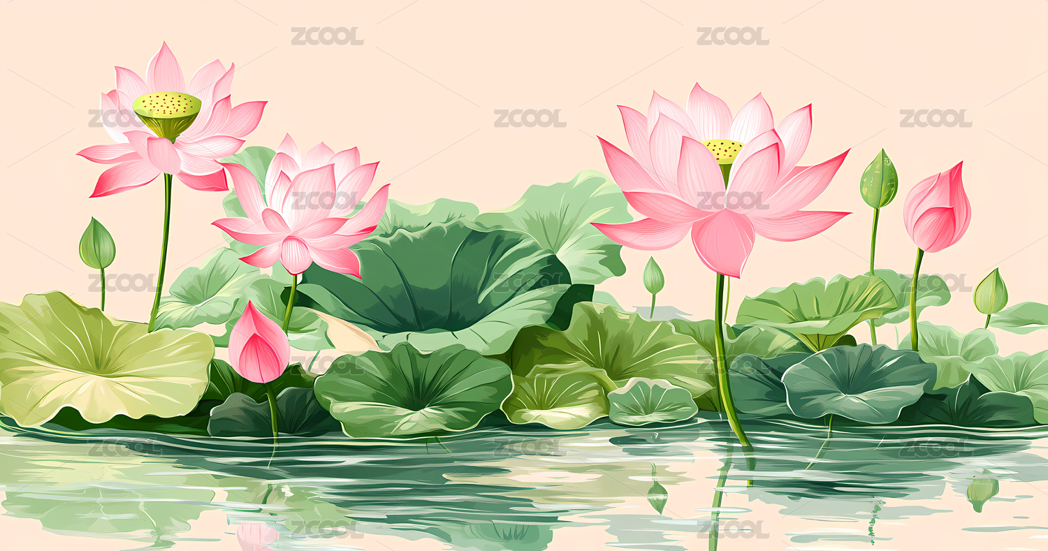 盛夏莲池插画