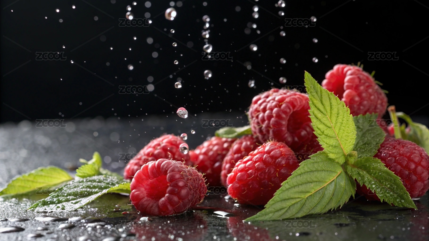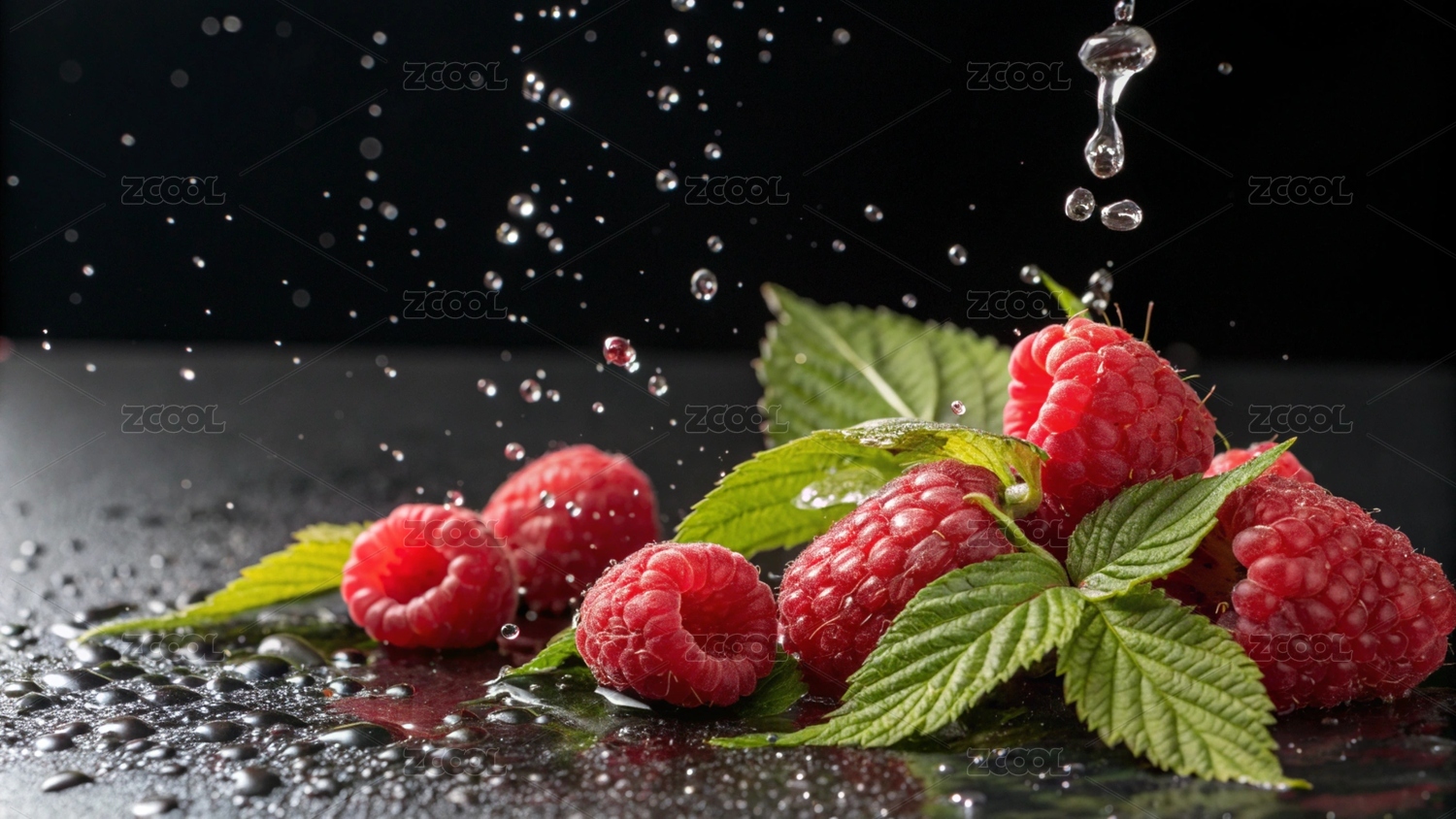 覆盆子,树莓,水果,水花,飞溅,水滴,红色,新鲜,美味,健康