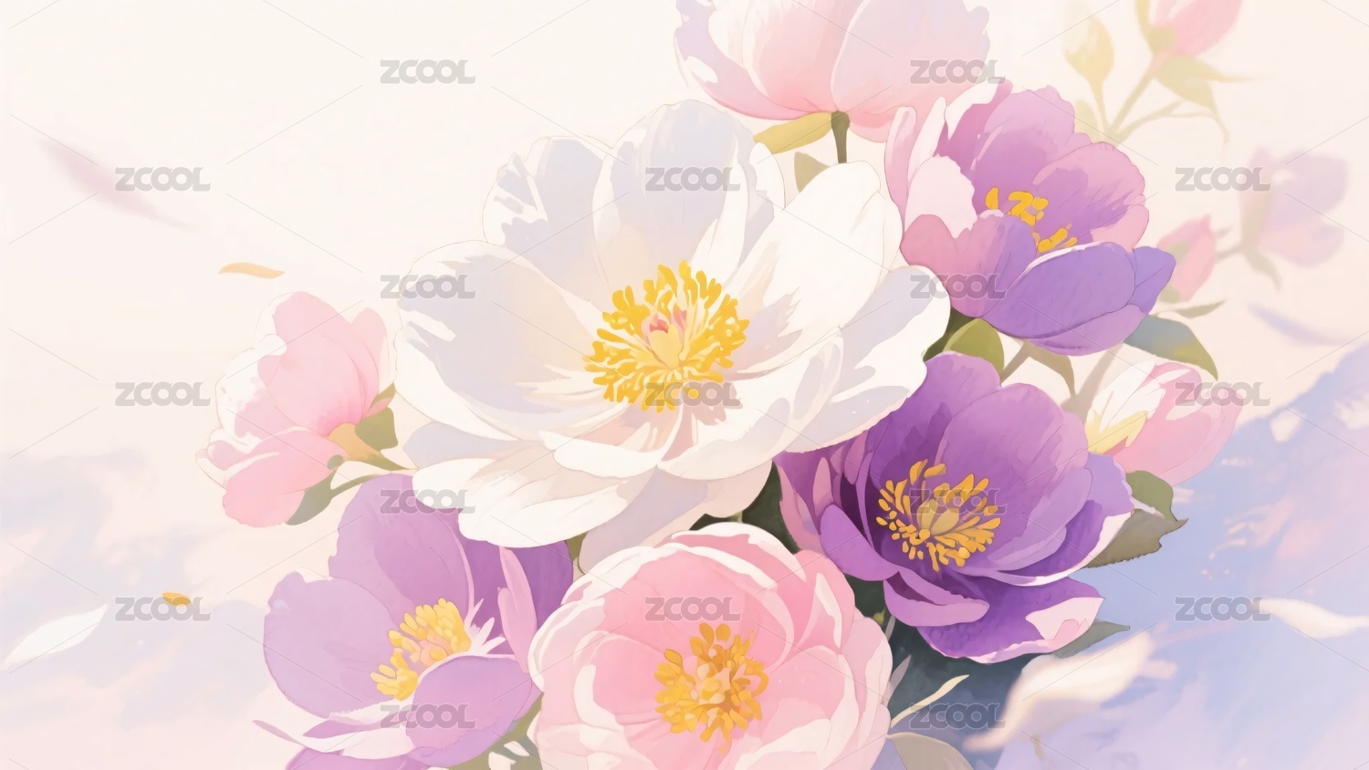 色彩柔和的花卉插画