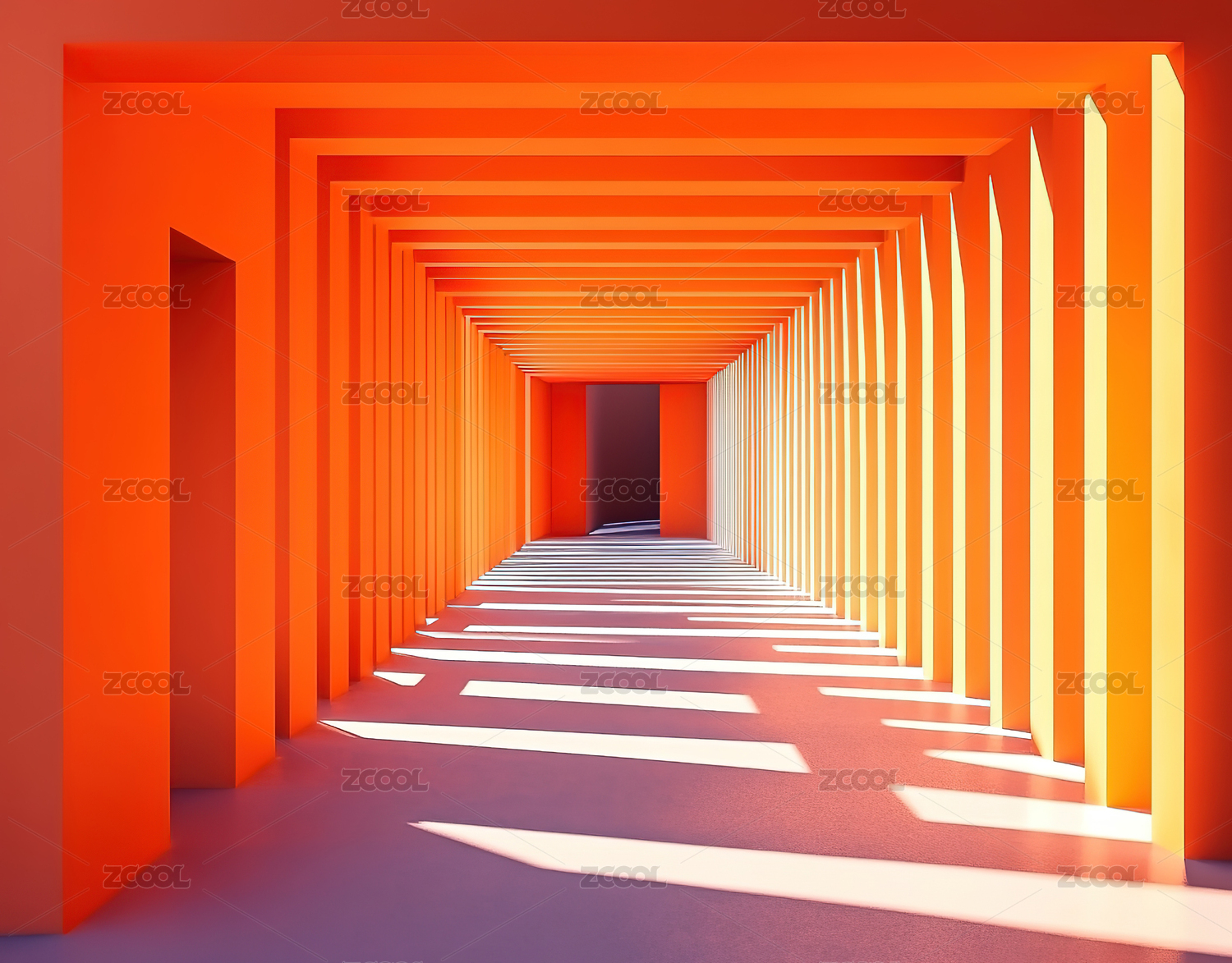 阳光洒在长廊上的光影效果