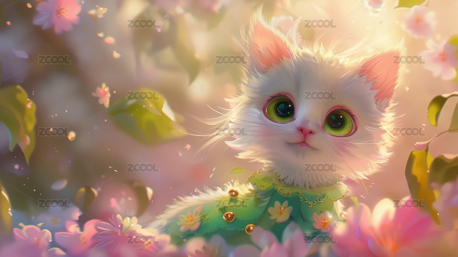 猫咪可爱唯美野生动物3D卡通插画壁纸