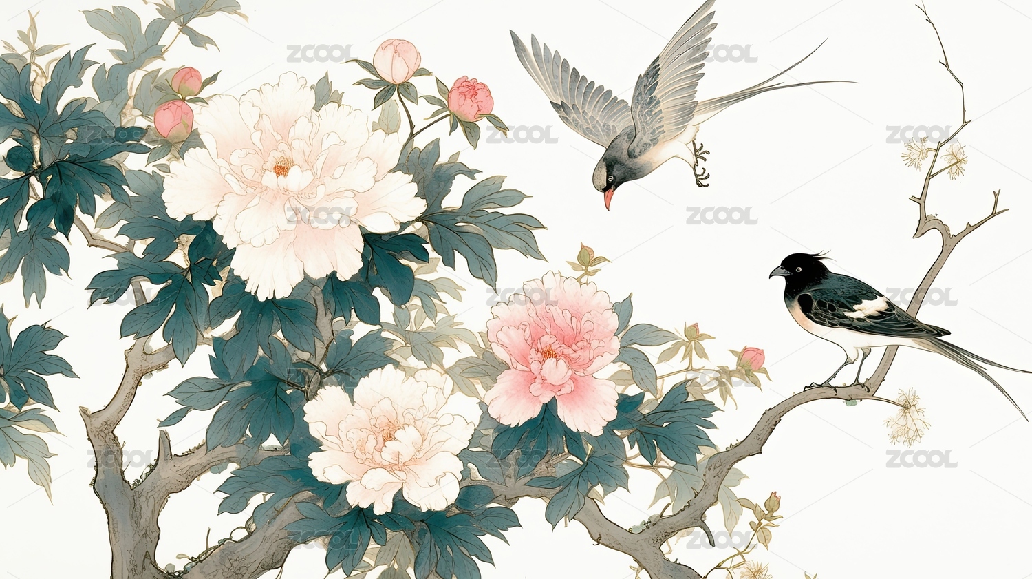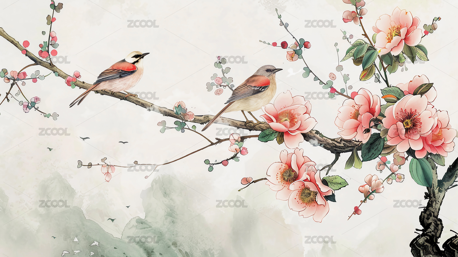 背景,艺术,黄色,水墨,花朵,粉色,绘画,枝条,写意,中国风