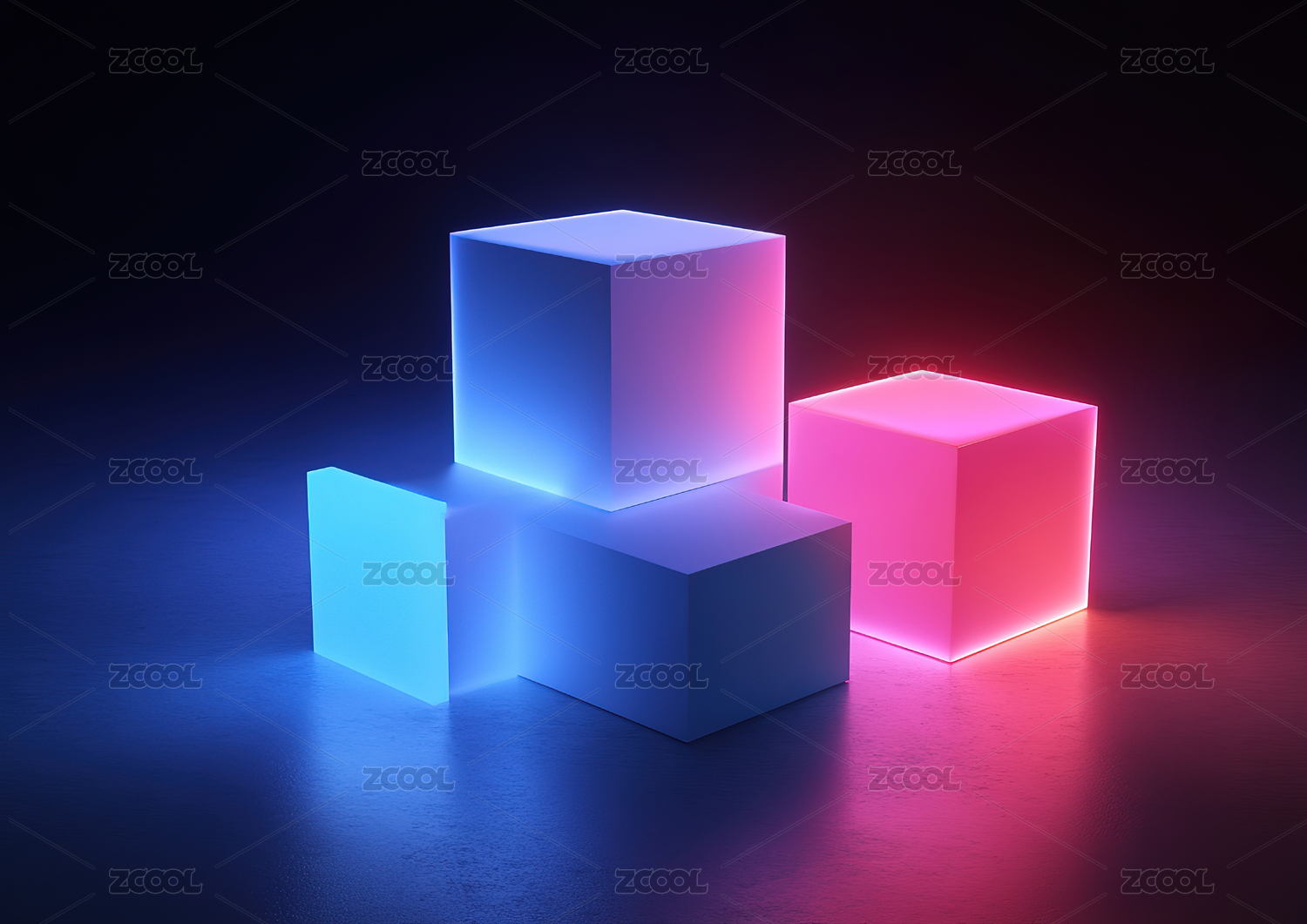 蓝色紫色几何立方体图案