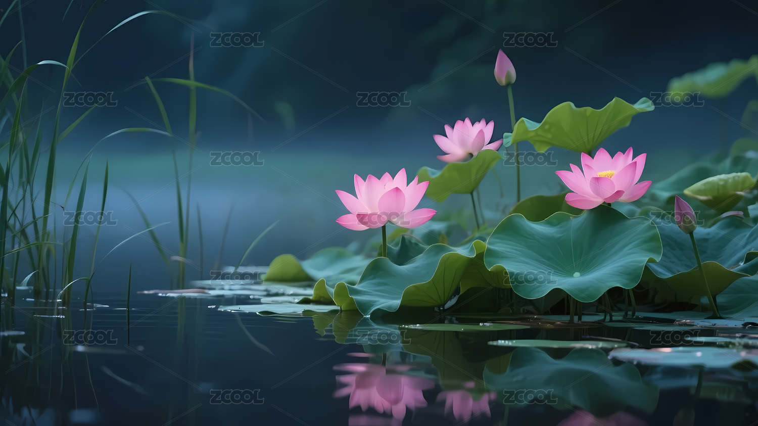 夏天荷花莲花清新自然大暑节气AI数字艺术