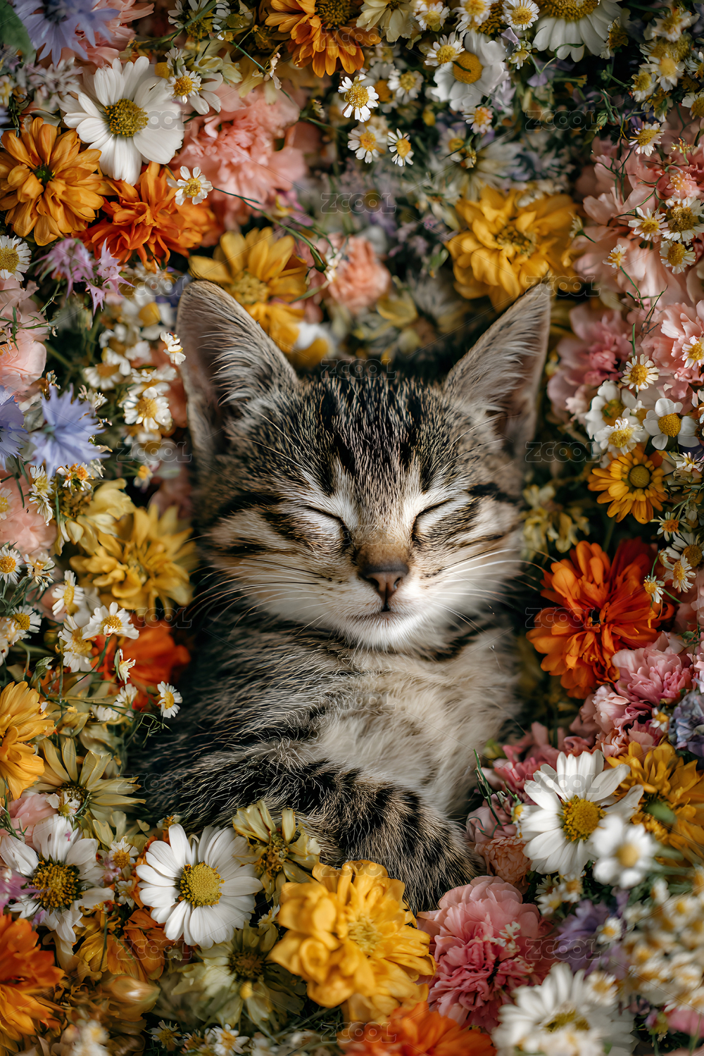 猫咪花丛中安睡