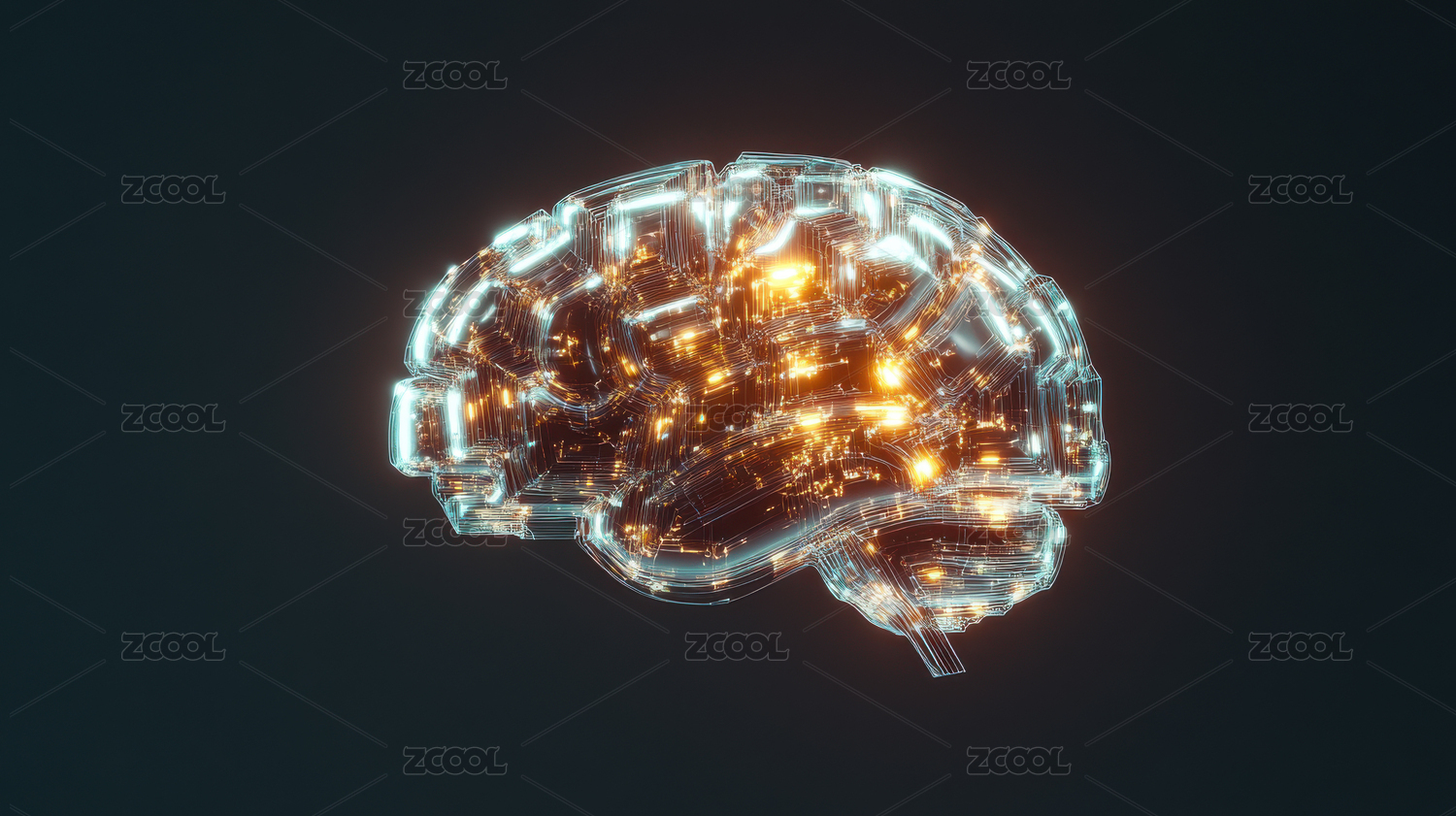 未来科技感的发光大脑