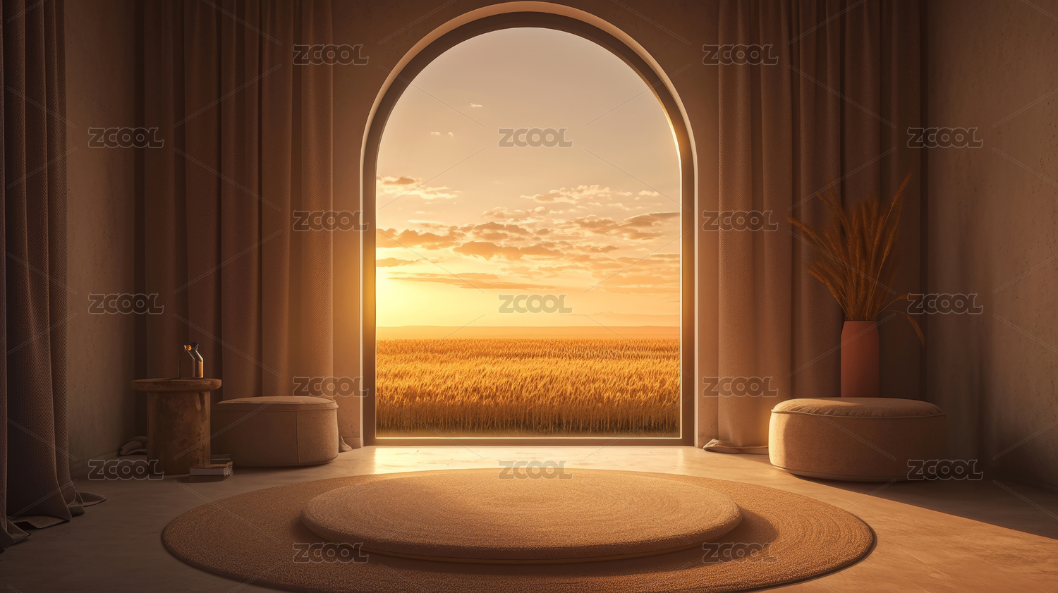 装饰,自然,宁静,景色,树木,田园,乡村,阳光,舒适,麦田