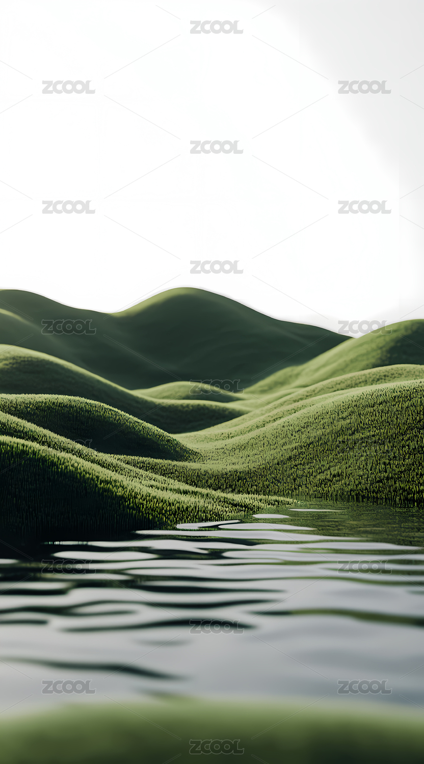 山丘湖面空灵意境
