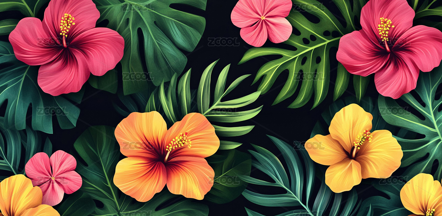 热带花卉植物图案背景