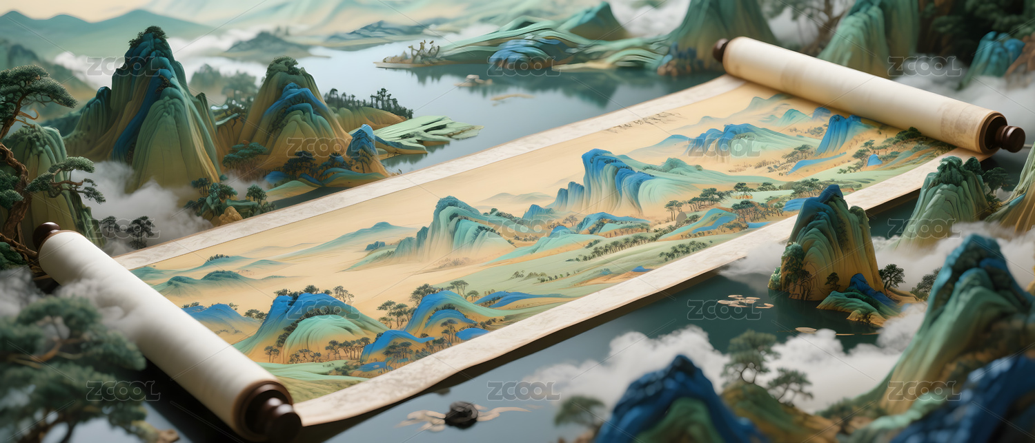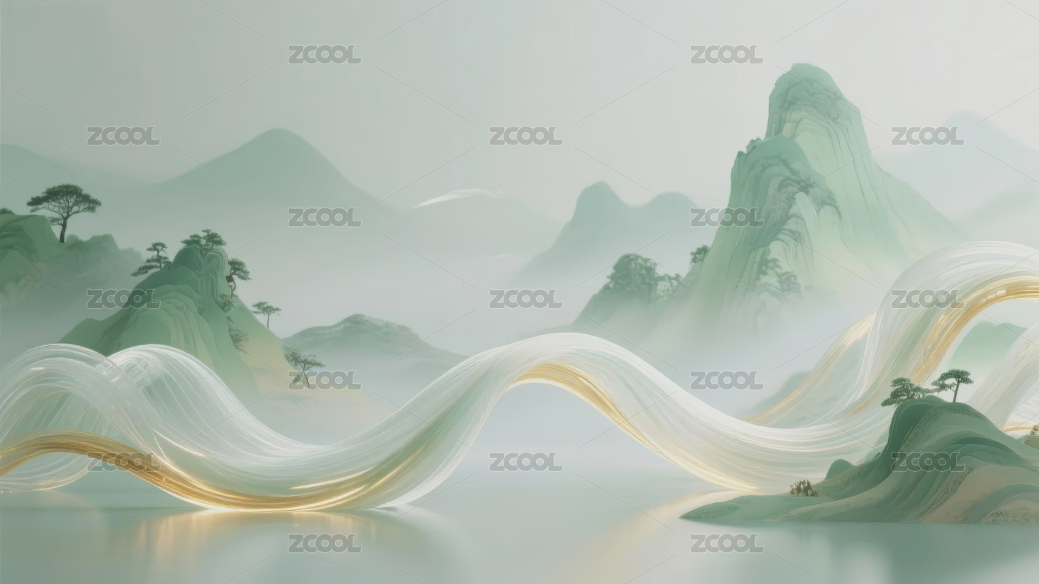 山水,国风,水墨,意境,云雾,山峦,新中式,卷轴,诗意,唯美